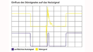 Elektromagnetische Verträglichkeit bedeutet die Fähigkeit eines technischen Gerätes, durch gewollte und ungewollte elektrische oder elektromagnetische Effekte nicht gestört zu werden oder andere zu stören. EMV ist wie das Übersprechen zu betrachten, jedoch nicht innerhalb der einzelnen Signalpfade im Stecker, sondern als externe Störquelle (Bild 3). Hochfrequente Signale sind sehr empfindlich gegenüber elektromagnetischen Störungen. Bereits ein kleiner Impuls kann das Nutzsignal verfälschen (Bild 4). Elektromagnetische Störungen lassen sich bei Steckverbindern durch ein Schirmkonzept reduzieren.
