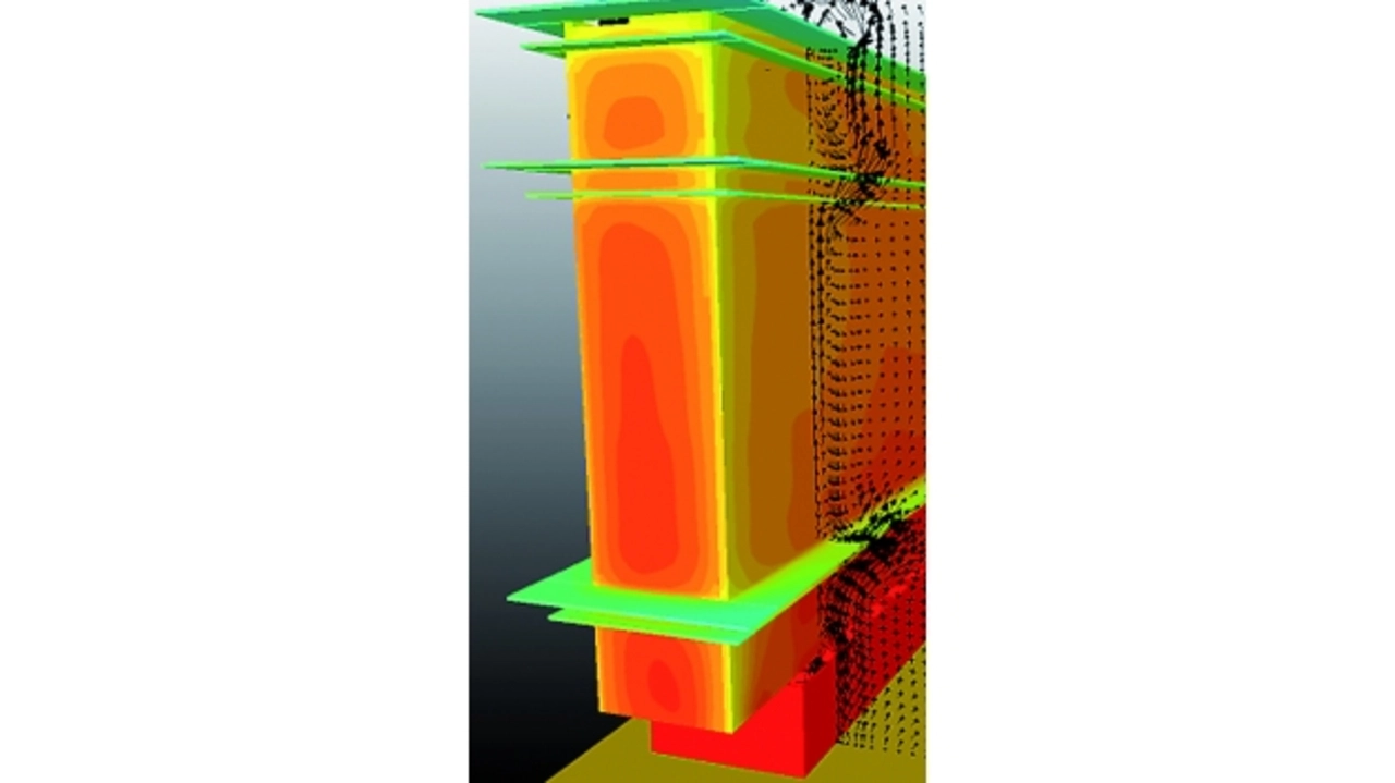 Dann wurde die Anzahl der Kerzen auf zehn erhöht. Die Außentemperatur beträgt 8 °C. Die drei Rippenreihen reduzieren die Wärmemenge, die an die Luft abgeführt wird, indem sie den Luftstrom an der Frontseite unterbrechen (Bild 6). Diese Konstruktion sollte sich mehr erwärmen und deshalb einen größeren Prozentsatz an Wärme nach außen abgeben.