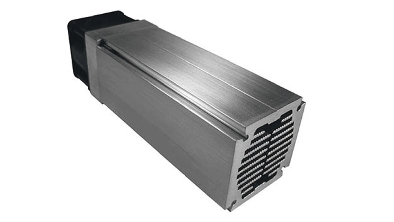 Dies geht einher mit einem günstigen Leistungsgewicht und einer hohen Kühlleistung pro Volumeneinheit. Die Kühlkörpermodule sind variabel in Bezug auf Länge (max. 500 mm) und Breite (max. 364 mm) herstellbar und können stirnseitig noch mit einem Axiallüfter kombiniert werden.