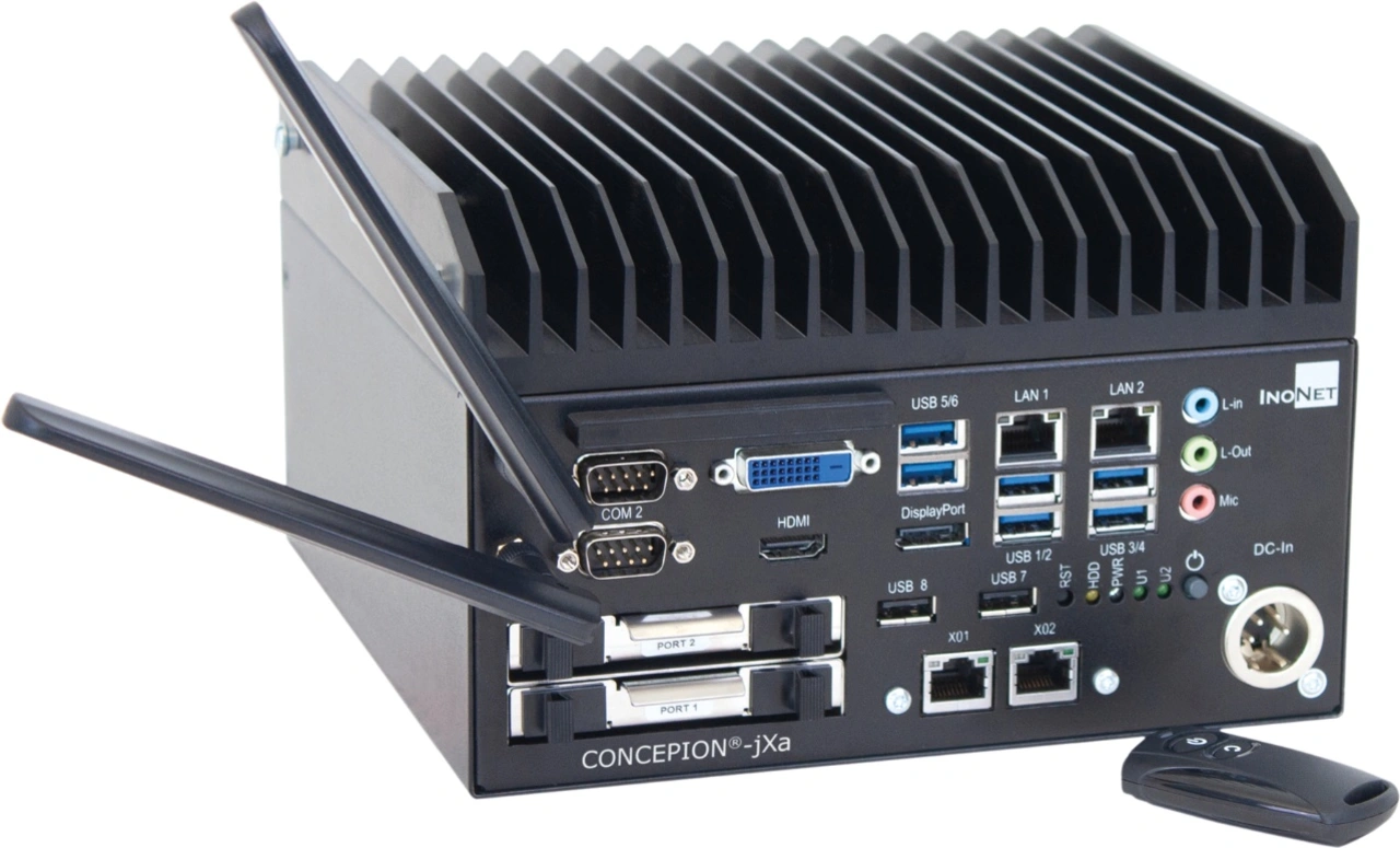 Darüber hinaus setzt InoNet im Concepion-jXa einfache Kühlklötze aus Aluminium ein. Pro PC wird ein Klotz als Wärmetransferelement im direkten Kontakt zur CPU und zu anderen Chips des Motherboards verbaut. Der Kühlklotz leitet die Abwärme der Halbleiter an den als Gehäusedeckel fungierenden schwarzen Profilkühlkörper weiter. Dieser Hauptkühlkörper ist für eine kontinuierliche Wärmeabfuhr mittels natürlicher Konvektion von ca. 50 W ausgelegt.