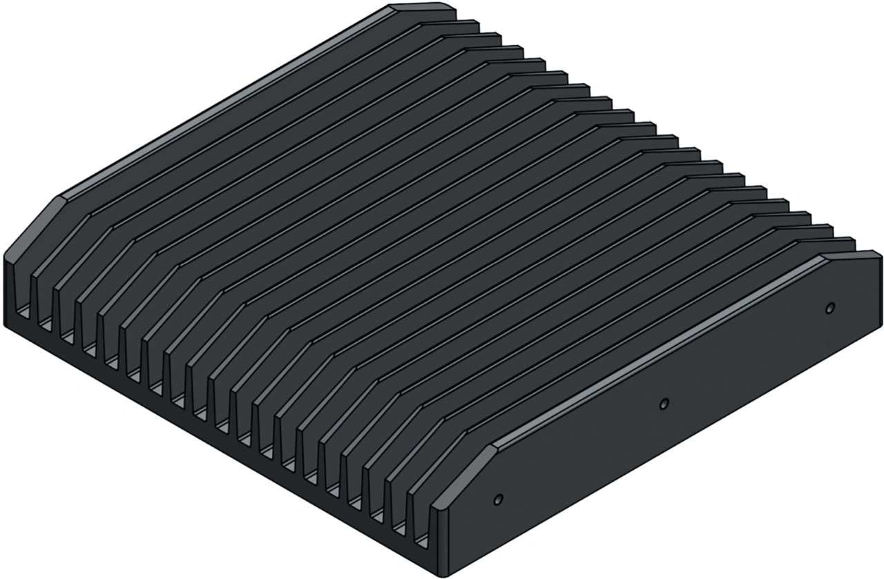 Des Weiteren können Kühlleistung sowie auch die Optik eines Strangkühlkörpers durch eine CNC-Bearbeitung und/oder Oberflächenveredlung weiter optimiert werden. So auch im Fall der Extrusionskühlkörper von InoNet. Da der Kühlkörper im PC nicht nur eine kühlende Funktion hat, sondern auch als Gehäusedeckel fungiert, hat InoNet besonders Wert auf die Optik gelegt. Als besonders Design-Merkmal verfügt der Kühlkörper über eine schwarze Eloxalbeschichtung. Lediglich vier M3-Gewinde, die gleichzeitig als Aufhängungspunkte für den Eloxierprozess dienen, bleiben eloxalfrei, um ihre Gängigkeit zu erhalten. Allerdings dürfen diese Gewindebohrungen von der gegenüberliegenden Seite aus optischen Gründen nicht sichtbar sein. CTX eloxierte die Kühlkörper gemäß DIN 17611-E6/C-35.