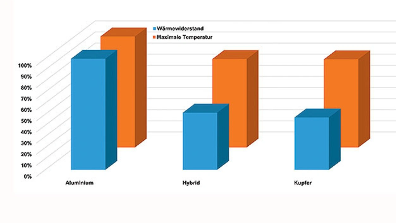 Als Kühlkörpermaterial kommen entweder Kupfer oder Aluminium zum Einsatz. Jedes Material hat seine Vor- und Nachteile. Ein kaltgasgespritzer Hybridkühlkörper kombiniert die Vorteile beider Materialien.