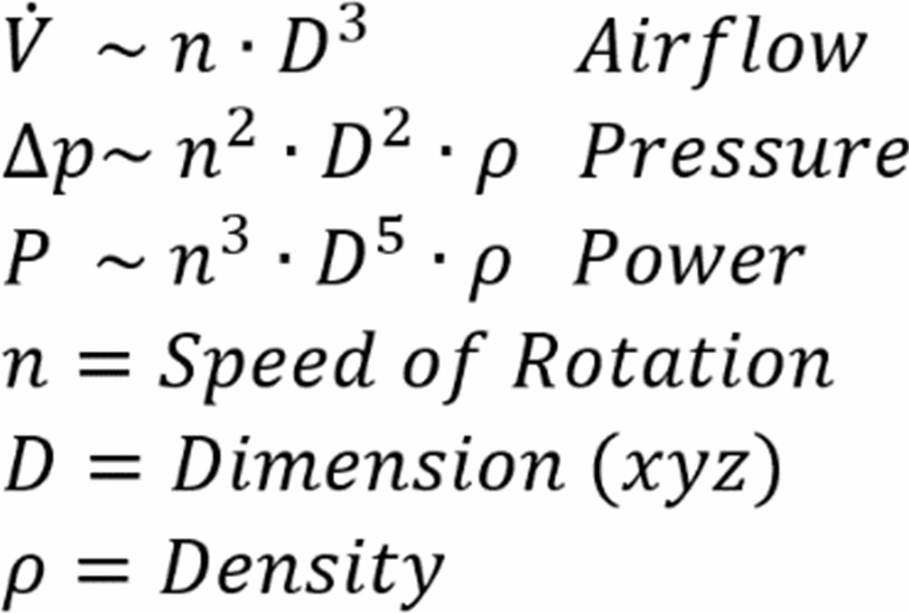 Ein größerer Lüfter, der mit niedrigerer Drehzahl betrieben wird, kann durch die reduzierte Rotationsgeschwindigkeit den Luftschall erheblich verringern. Ein kleinerer Lüfter müsste dagegen schneller drehen, um denselben Luftdurchsatz zu erreichen. Allerdings muss auch in diesem Fall der jeweilige Arbeitspunkt betrachtet werden. Ein kleiner Lüfter kann im Vergleich zu einem größeren bei identischem Betriebspunkt auf einer PQ-Kurve eine steilere Kennlinie aufweisen. Abhängig vom Arbeitspunkt kann dies dazu führen, dass der kleinere Lüfter in einem besseren Bereich seiner Kennlinie arbeitet und dadurch leiser ist als ein größerer.