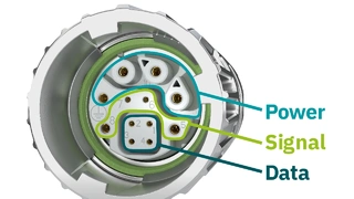 Bei diesem Steckverbinder handelt es sich um das erste Produkt, das dem neuen IEC-Standard 61076-2-117 entspricht. Die gleichzeitige Übertragung von Daten, Signalen und Leistung über einen kompakten M17-Steckverbinder mit genormter Schnittstelle ist eine Schlüsselinnovation. Der Steckverbinder reduziert den Platzbedarf auf Geräten, minimiert den Materialeinsatz und vereinfacht die Systemarchitektur bei voller Funktionalität.