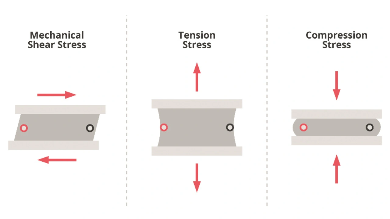 Der häufigste Ausfallmechanismus eines Peltier-Moduls sind Risse in den Halbleiterpellets oder Lötstellen, verursacht durch Scher- und Zugspannung, mechanische Druckkräfte, Wärmezyklen oder Verunreinigungen. In diesen Fällen steigt der elektrische Serienwiderstand des Moduls und der thermische Wirkungsgrad sinkt. Zwar breiten sich diese Brüche zunächst nicht über den gesamten Bereich der Pellets oder Lötstellen aus, können sich aber schlussendlich weiter ausbreiten und dazu führen, dass das Modul vollständig ausfällt. Wie aber kommt es zu diesen mechanischen Beanspruchungen?
