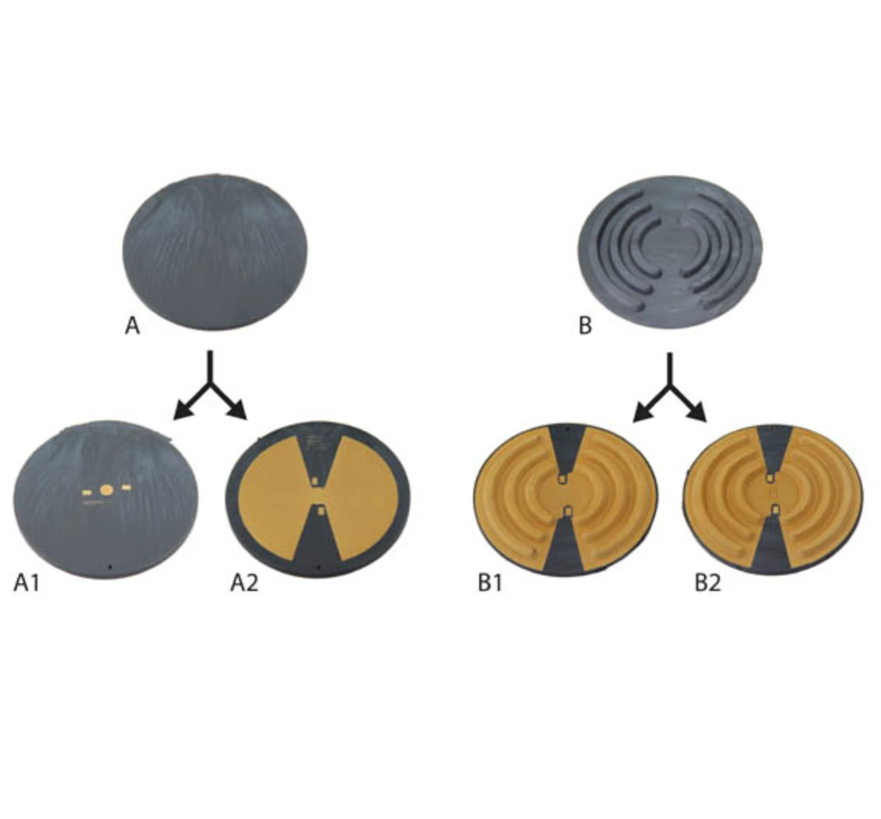 Auf Grundlage der Simulationsergebnisse wurden zwei verschieden Plattensubstrate mit je zwei verschiedenen Layoutvarianten realisiert. Die Version B aus Bild 2 ergänzt hierbei die zweidimensionale Version A um dreidimensionale Kühlflächen. Durch diese einfache Maßnahme konnte die verfügbare Kühloberfläche um 40 % gesteigert werden.