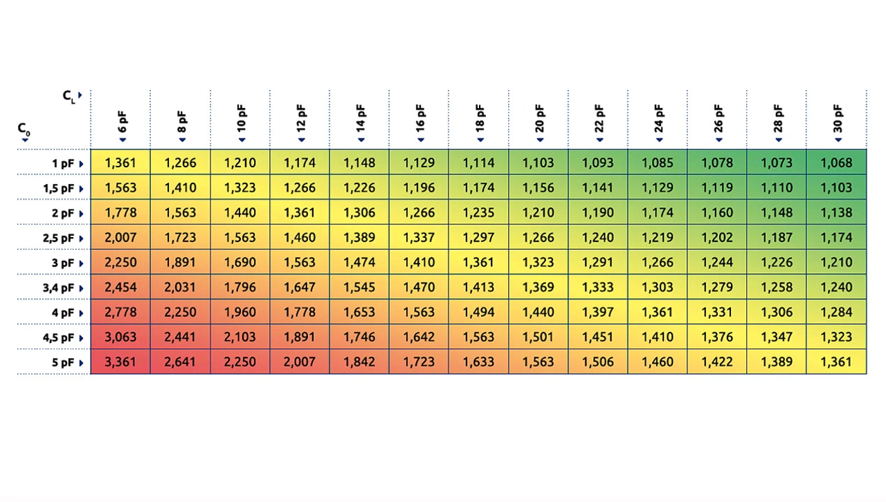 Die Tabelle 2 zeigt den Faktor zwischen R1 und ESR in Abhängigkeit von C0 und CL im Überblick.