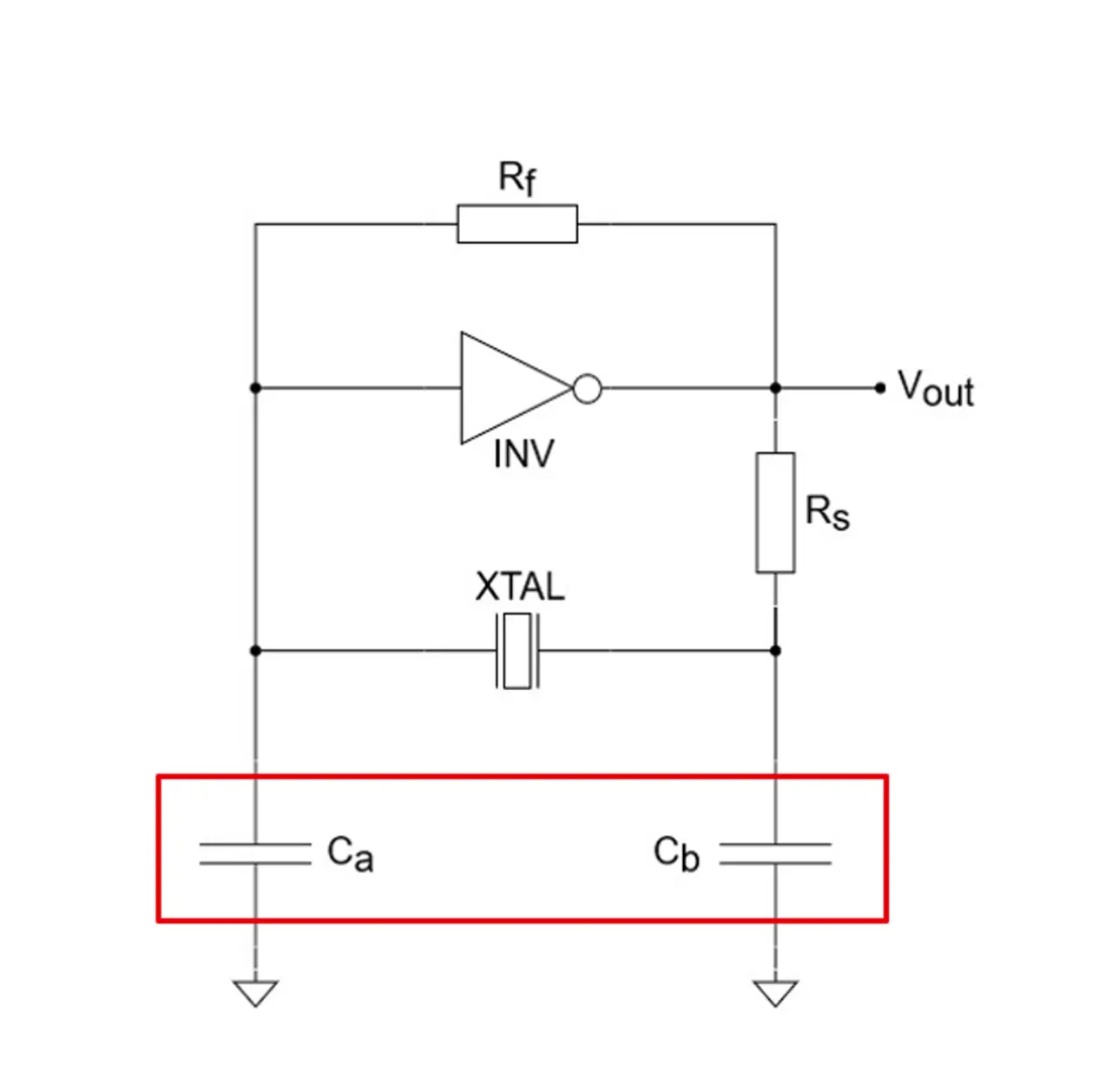 Bereits seit vielen Jahrzehnten werden Quarze verwendet, um Taktsignale zu erzeugen. Da Quarze allerdings passive Bauteile sind, wird stets eine sogenannte Aktivierungsschaltung benötigt, die aus dem passiven Quarz einen aktiven Oszillator macht. Die gängigste Variante dieser Oszillatorschaltung ist der »Pierce«-Oszillator entsprechend Abbildung 1. Hierbei sind der Inverter (Inv) sowie der Widerstand Rf in den meisten Fällen bereits im Mikrocontroller integriert. Die beiden Kondensatoren Ca und Cb hingegen müssen hinzugefügt werden und sind integraler Teil der Lastkapazität.