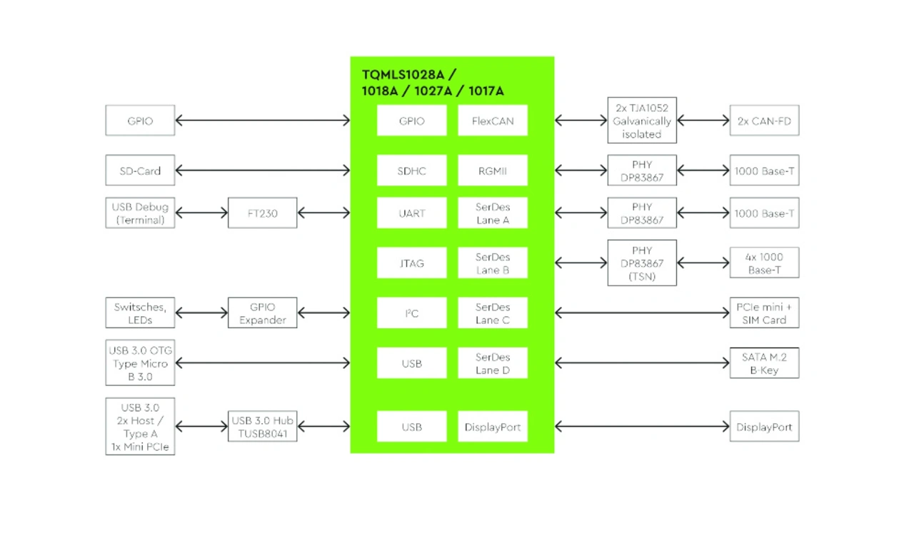 Ein System, das auf der Grundlage des LS1028A entwickelt wurde (Bild 3), eignet sich für den Einsatz in Echtzeitprojekten. Die Plattform bietet auf 100 x 160 mm² neben einem vier-Port-Gigabit-TSN-Switch auch zwei Gigabit-Ethernet-Schnittstellen, USB 3.0, PCIe, M.2 SATA, CAN und einen Embedded Display Port mit Graphics Processing Unit (GPU)-Unterstützung.