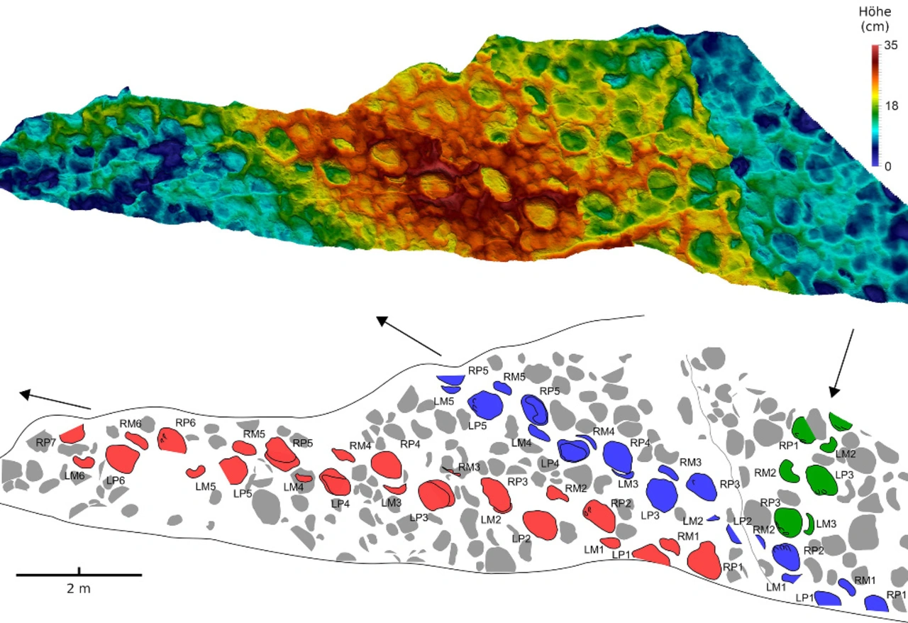 »Das Herausarbeiten individueller Fährten aus diesem zerstampften Durcheinander von Fußspuren war Detektivarbeit und nur durch die Analyse hochauflösender 3D-Modelle am Computer möglich«, sagt Dr. Oliver Wings vom Zentralmagazin Naturwissenschaftlicher Sammlungen der Martin-Luther-Universität Halle-Wittenberg.