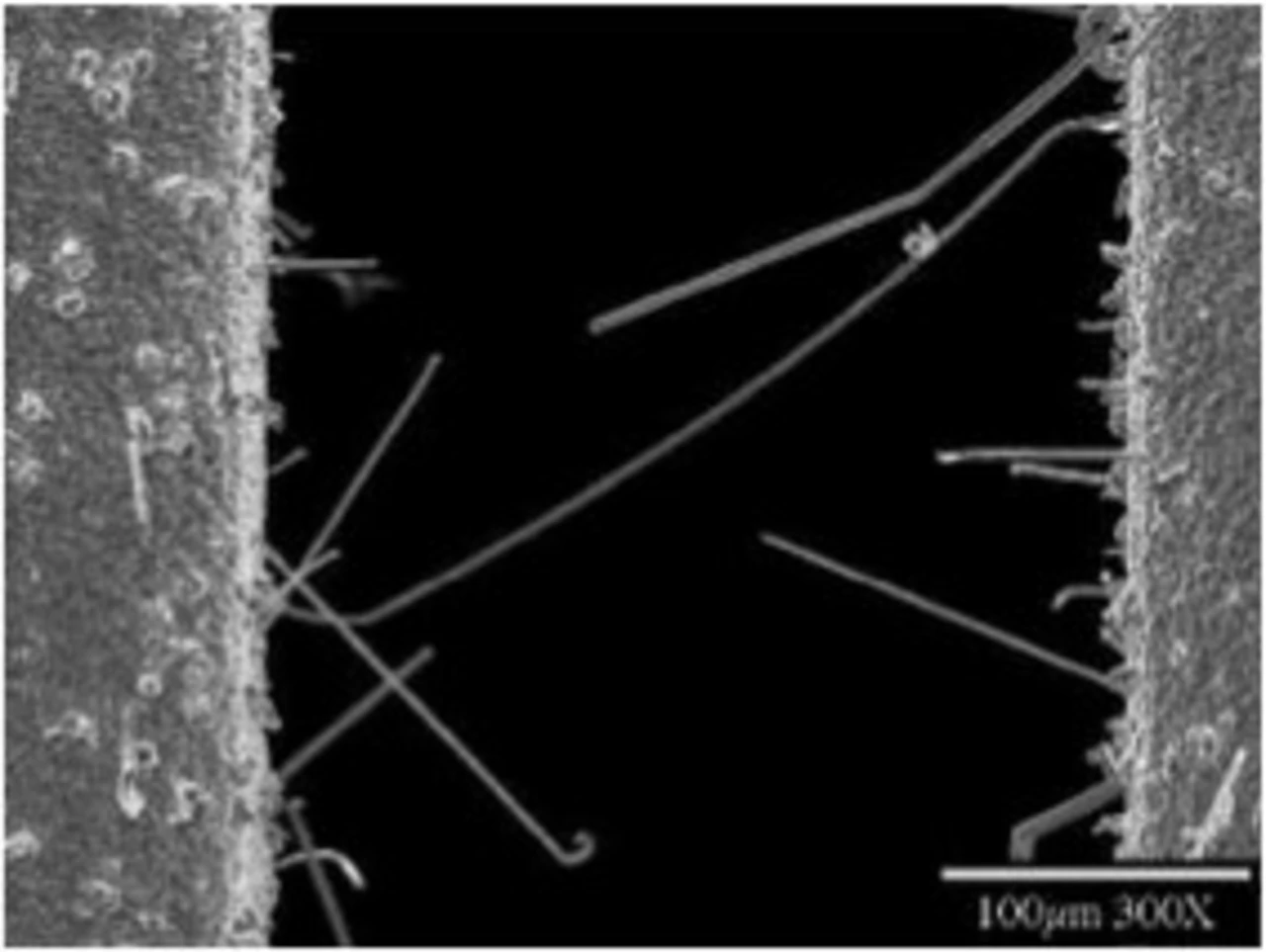 die Dampftemperatur von 235°C zudem über der Schmelzetemperatur von Reinzinn (231,92 °C) liegt, wirkt HS 235 der »Whiskerbildung«, wie hier sichtbar, entgegen.
