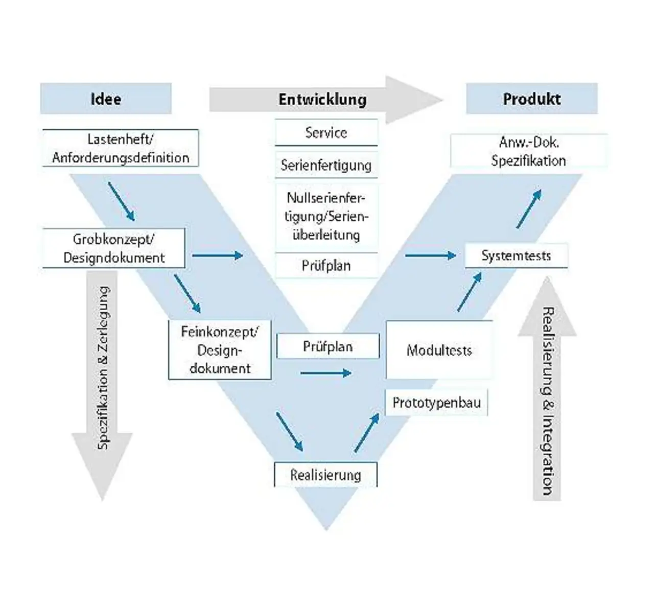 Die Komplettdienstleistungen der TQ-Gruppe reichen von der Entwicklung über Layout, Fertigung, Montage bis zum After-Sales-Service, decken also das gesamte »V-Modell« des Proktentstehungszyklus ab (Bild 2).