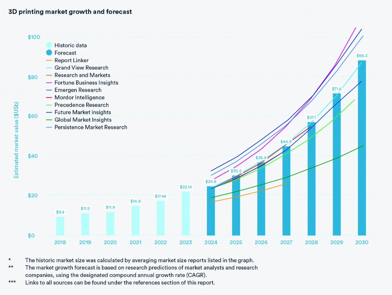 Bis Ende 2028 wird der Markt für additive Fertigung ein Volumen von 52,7 Milliarden US-Dollar erreichen.