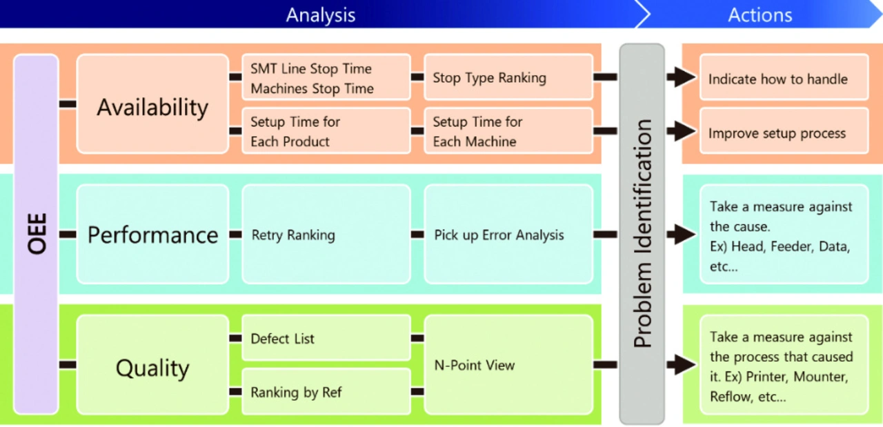 Die Datenwissenschaft steht bereit, um auch Elektronikherstellern zu helfen. Dank des fundierten Fachwissens der aufstrebenden Datenwirtschaft lassen sich ehemals manuelle Analyseaufgaben automatisieren, um schneller und effizienter als bisher tiefere Einblicke zu gewinnen. Yamaha hat sich mit dem US-Unternehmen Tableau Software zusammengetan, um ein visuelles Dashboard-Paket auf den Markt zu bringen, in das die Analyse-Software von Tableau eingebettet ist. Die im Dashboard verfügbaren Tools bieten Echtzeit- und vergangenheitsbezogene Produktionsanalysen. Sie helfen dabei, den Betriebsqualitäts-Status zu visualisieren sowie die Verfügbarkeit, Leistung und Qualitätsfaktoren zu analysieren, welche die Gesamtanlageneffektivität (Overall Equipment Effectiveness, OEE) bestimmen. Zudem unterstützen sie dabei, die Daten genauer zu untersuchen, um die Ursachen von Problemen oder Defekten zu identifizieren und Hilfe bei der Lösung von Problemen wie etwa Bauteilaufnahmefehlern, Linienaustaktungsproblemen und anderen Engpässen zu bekommen.