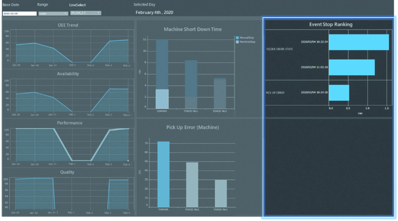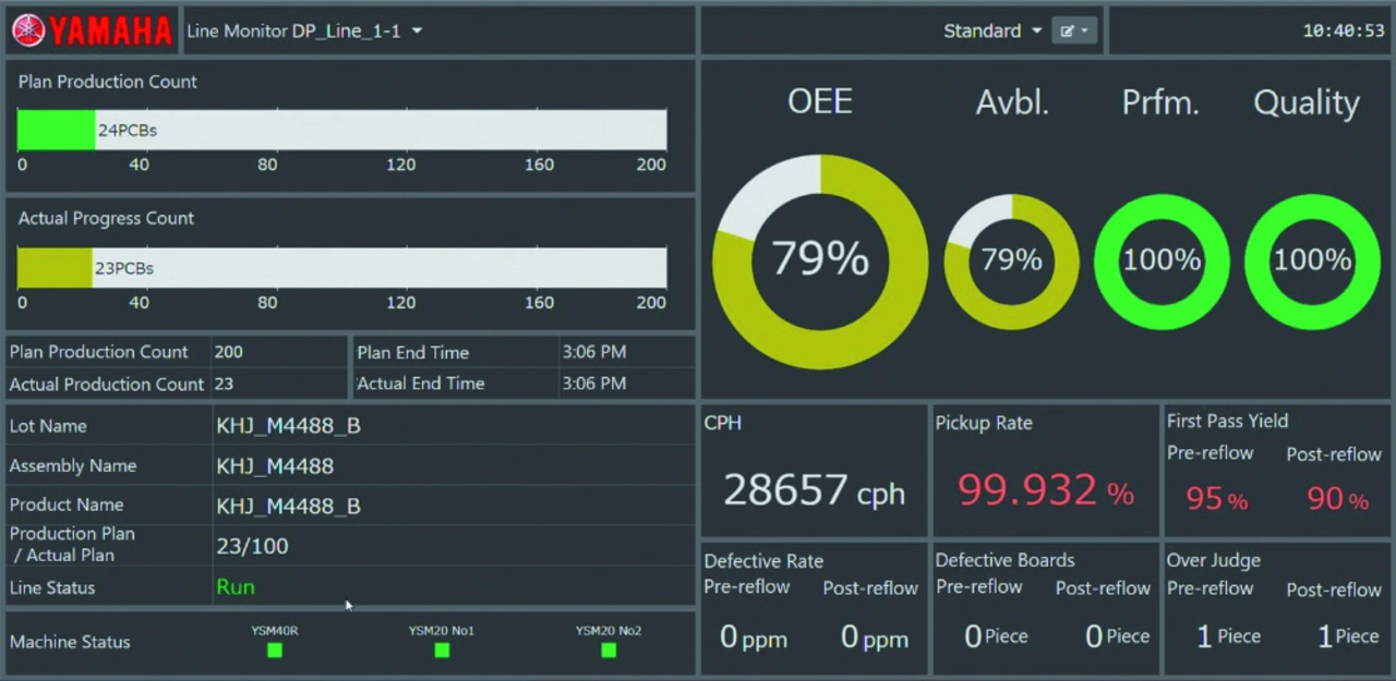 Die Dashboard-Überwachungs-Tools von Yamaha helfen Bedienern, den Überblick über den Status der Anlagen zu behalten und bei Bedarf Maschinen und Produktion schnell wieder in Gang zu bringen, während Führungskräfte und das technische Personal die Erkenntnisse nutzen können, um Probleme auf strategischer Ebene abzustellen und Maßnahmen zur Leistungsverbesserung zu ergreifen. Auf einer höheren Ebene liefern Management Reporting Tools die Analysen, die erforderlich sind, um den aktuellen Stand der Fertigungskapazitäten zu bewerten und sofort wirksame und längerfristige Entscheidungen zu treffen.