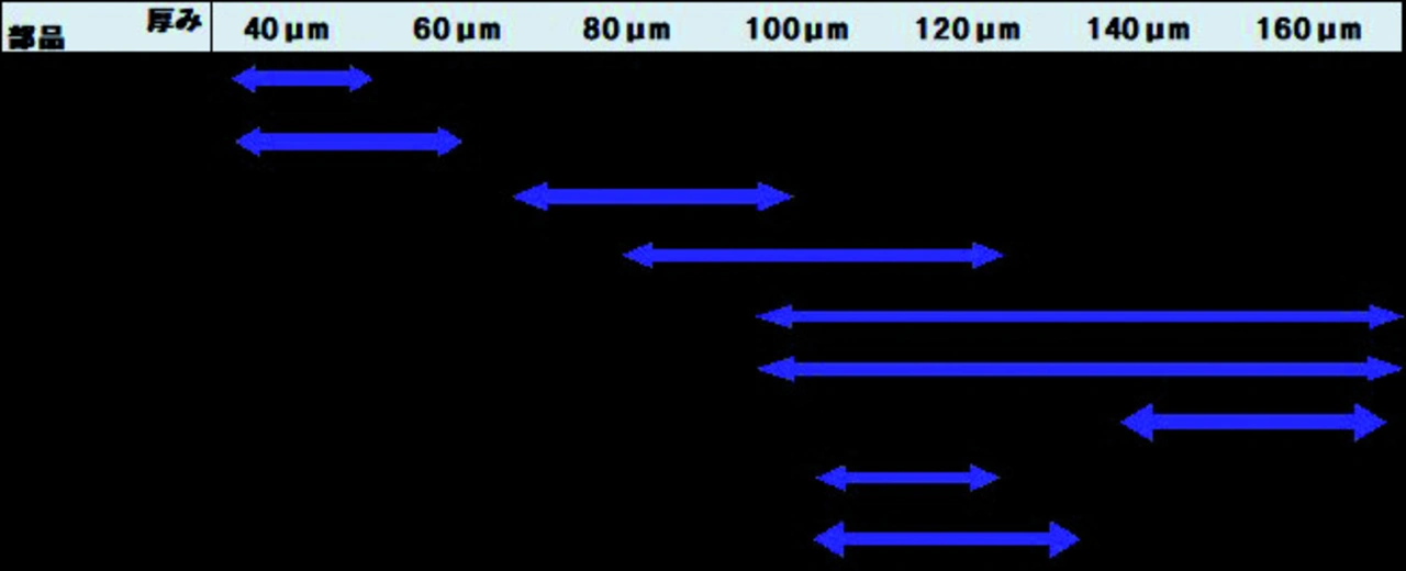 Um einer dieser Formeln zu entsprechen, muss die Kontaktfläche des Pads größer sein als die Gesamtfläche der Öffnungswand. Im Endeffekt muss die Schablonendicke reduziert werden, um eine zufriedenstellende Pastenauslösung bei kleineren Öffnungsgrößen zu gewährleisten. Tabelle 2 fasst die typischen Bereiche der Schablonendicke in Bezug auf die Größen der SMD-Chipbauteile zusammen.