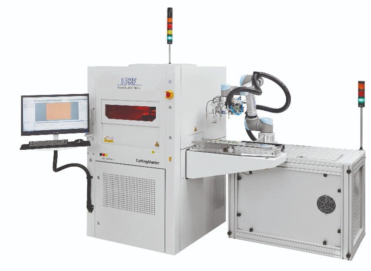 Der letzte Arbeitsschritt in der Linie ist das Nutzentrennen. Mit dem CuttingMaster Cx stellt LPKF ein kompaktes, kosteneffizientes und flexibel automatisierbares Lasersystem zum Nutzentrennen von PCBs vor. Es kann optional mit einem Cobot vollständig automatisiert werden. Bezüglich Performance und Qualität ist das Laser-Nutzentrennen vielen anderen Verfahren weit überlegen: Es arbeitet berührungslos und staubfrei, trennt Stege oder beliebige Konturen und benötigt nur minimale Schnittkanäle.