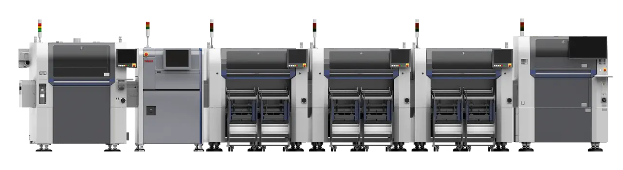 Die neuesten Oberflächenmontage-Maschinen der »YR-Serie« von Yamaha zeichnen sich durch erhöhte Genauigkeit und Stabilität aus und ermöglichen vollautomatische Umrüstungen für eine noch nie dagewesene Geschwindigkeit und Effizienz. Die Automatisierung versetzt den neuen Premium-Drucker »YRP10« in die Lage, einen unmittelbaren Schablonenwechsel für anhaltend hohen Durchsatz und konsistente Lotpastenbedingungen durchzuführen. Der Bestücker »YRM20« ermöglicht einen nonstop-Wechsel von Feeder-Wagen und Feedern, kombiniert mit hoher Bestückungsgeschwindigkeit und einer Auswahl an flexiblen Bestückköpfen zur Maximierung des Durchsatzes. Das 3D-AOI-System »YRi-V« mit hochauflösender Bildverarbeitung, Hochgeschwindigkeits-Grafikverarbeitung und KI zur Verbesserung der Bauteilerkennung vereinfacht die Programmierung, verkürzt die Zykluszeit und steigert die Prüfgenauigkeit.
