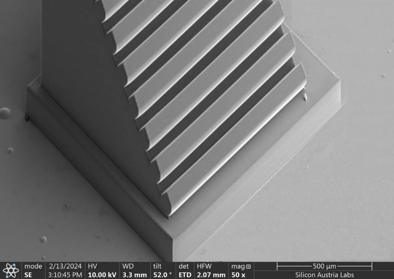 Dazu hat SAL (Silicon Austria Labs) das 3D-Drucksystem »Quantum X align« von Nano¬scribe erworben, das auf der Zwei-Photonen-Polymerisation basiert, um optische Komponenten mit Submikron-Auflösung in Advanced Packages platzieren zu können. Dieses Gerät eröffnet SAL neue Dimensionen der Integration auf Chip- und Wafer-Ebene. Denn die Zwei-Photonen-Polymerisation ist im Gegensatz zu herkömmlichen Lithographie-Techniken nicht auf 2D- bis 2.5D-Strukturen auf ebenen Oberflächen beschränkt. Damit kann SAL die photonische Integration und die Montage miniaturisierter optischer Komponenten vorantreiben und das neue Verfahren mit anderen Packaging-Technologien kombinieren.