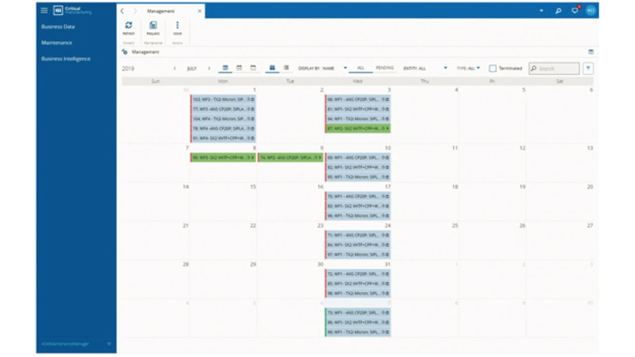 Die so geschaffene zentrale Datenablage macht zeitraubende Suchaktionen nach Wartungs- und Reparaturinformationen überflüssig. Mit Vorliegen der relevanten Daten zeigt der Kalender in ASM Equipment Center die Wartungsintervalle, benachrichtigt mit Vorlauf über anstehende Wartungsarbeiten und erlaubt Serviceplanern den Drilldown bzw. die papierlose Kommunikation von Anleitungen und Checklisten für die in dieser Wartung erforderlichen Arbeiten.