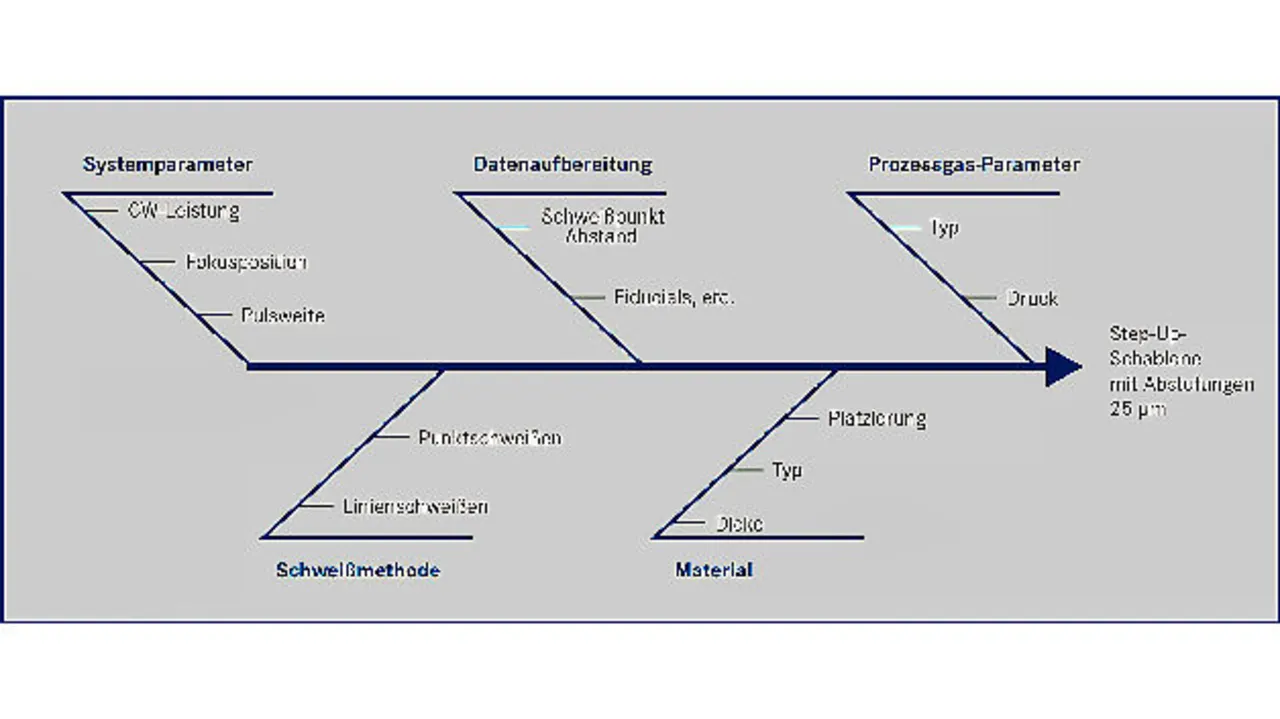 Der zeitliche Aufwand, um eine Stufenschablone herzustellen, hängt von der Anzahl und dem Abstand der einzelnen Schweißpunkte ab. So kann die Performance mit 0,5 mm Abstand zwischen den Schweißpunkten deutlich unter 1 s pro mm2 Stufenfläche liegen.