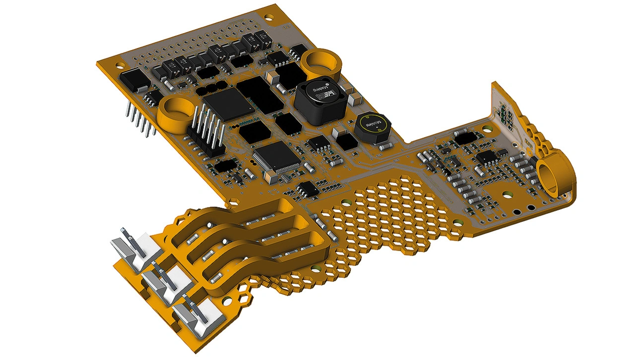 Ein anderer wichtiger Punkt sind die aktuell fehlenden eCAD-Funktionen für die 3D-Elektronik. Tatsächlich ist das im Moment der Show-Stopper. Vorhandene eCAD-Lösungen für Embedded, Flex oder Hybrid- Layout gehen nur bis zu 2,5D. Manche behelfen sich deshalb und malen mit mechanischen CAD-Tools die Leiterzüge; leider ohne jegliche elektrische Kontrolle oder eine Verbindung zum Schaltplan im Hintergrund.