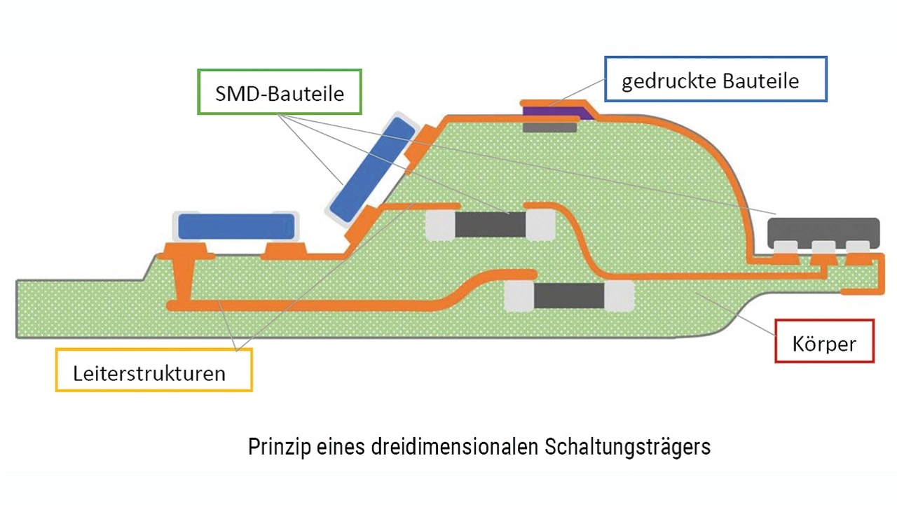 Hanno Platz (Vorsitzender des Arbeitskreises 3D-Elektronik im Fachverband Elektronikdesign und -fertigung (FED)): Der Druck auf die deutsche und europäische Elektronikindustrie ist groß. Nur mit leistungsstarken, innovativen Produkten und Technologien können wir im internationalen Wettbewerb mithalten. Miniaturisierung und Leistungssteigerung gehen einher mit der heterogenen Systemintegration. Und das nicht nur auf Halbleiterebene, sondern auch auf der nächsten Stufe der Aufbau- und Verbindungstechnik (AVT), was wir bisher als bestückte Leiterplatte kennen. Das bedeutet: Gehäuse, Sensorik, Aktorik, HF und Elektronik verschmelzen auf engstem Raum. Neue generative 3D-Druckverfahren und Materialien ermöglichen schon jetzt, eine formfreie werkzeuglose Fertigung, in die sich auch elektrische Bauteile integrieren lassen.