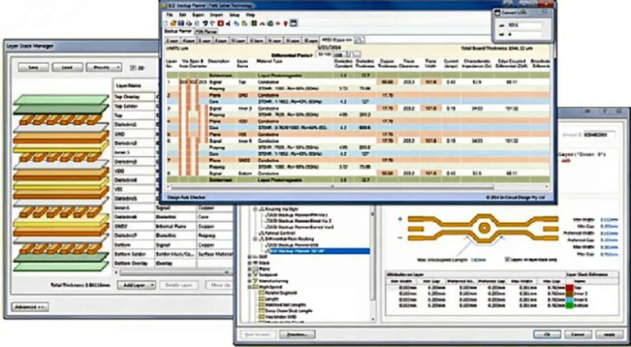 ICD hat auf diese Situation reagiert und eine bidirektionale Schnittstelle zwischen dem ICD Stackup Planner und Altium Designer entwickelt. Dieses neue Interface macht es gar möglich, den Rigid/Flex-Lagenaufbau aus dem Altium Layer Stack Manager in den Stackup Planner zu übernehmen. Zur Impedanz Berechnung stehen über 8.800 dielektrische Materialien inklusive High-Speed-taugliche Werkstoffe für bis zu 40 GHz zur Verfügung. Außerdem können mehrere differenzielle Leiterpaare mit unterschiedlichen Zielimpedanzen auf ein und demselben Substrat berechnet werden.