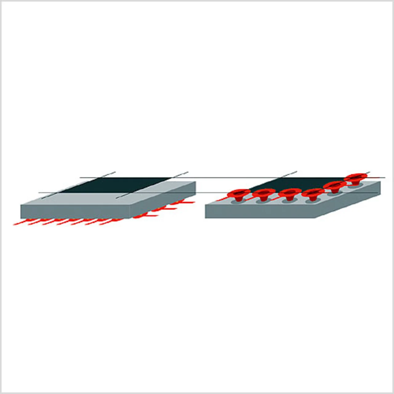 Ein weiterer Pluspunkt der Lasercavity-Methode ist die Positionsgenauigkeit. So ließen sich in einer Applikation LEDs mit einer Sockelkantenlänge von 200 μm in eine Matrix platzieren, wobei die Dichte etwa 12 000 LEDs pro Quadratdezimeter beträgt. Auf der Rückseite der Applikation wurde ein Kühlkörper aus Aluminium laminiert, um die Verlustwärme der LEDs aufzunehmen und abzuführen (Bild 4).