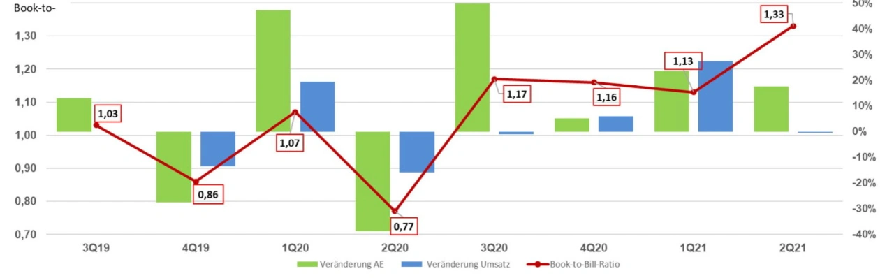 Das Book-to-Bill-Ratio lag im ersten Quartal des Jahres bei einem Wert von 1,33 und damit bereits im vierten Berichtsabschnitt in Folge stabil im positiven Wachstumsbereich.