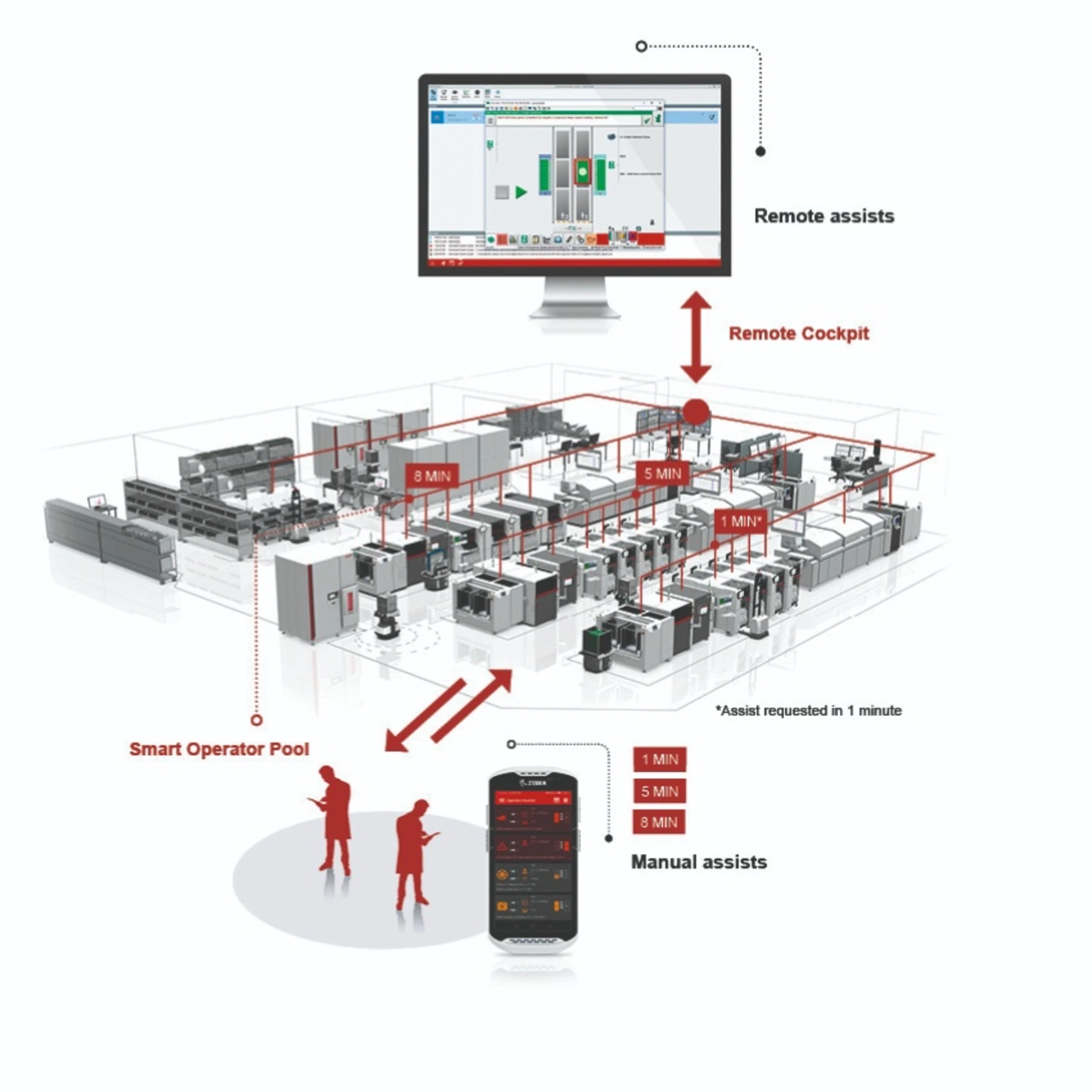 WORKS Command Center überwacht und analysiert permanent alle Daten und Statusmeldungen der Produktionslinien. Ist ein manueller Eingriff erforderlich, alarmiert WORKS Command Center gezielt den Bediener, der für die Lösung des detektierten Problems ausgebildet und trainiert ist. Dies kann über verschiedenste Endgeräte erfolgen, zum Beispiel über Smartphones, Tablets oder Smart Watches. Auf dem Display der Mitarbeitenden erscheinen dann automatisch alle für die Abarbeitung erforderlichen Informationen.