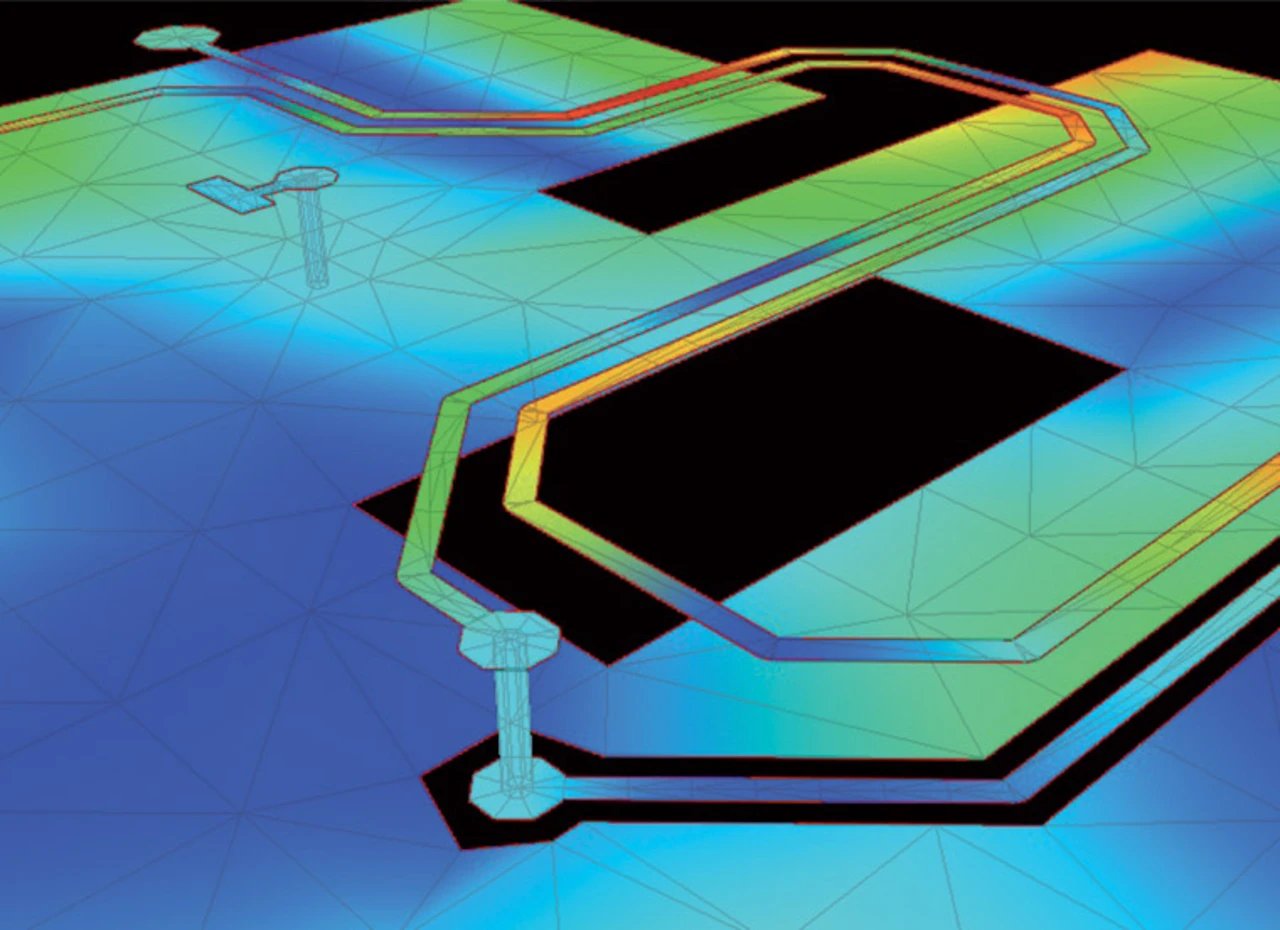 Bei der elektromagnetischen Verträglichkeit betrachtet man nicht die Qualität eines Signals, wie es vom Empfänger gesehen wird, sondern es geht vielmehr um die Wechselwirkung der gesamten Schaltung. In der ersten EMV-Simulation wird üblicherweise nur die Geometrie der Leiterplatte betrachtet. Denn schon alleine Form und Größe einer Leiterkarte, unabhängig von deren Bestückung oder Entflechtung, haben entscheidenden Einfluss auf die EMV. Die gesamte Karte wird mit verschiedenen Frequenzen angeregt und zum Schwingen gebracht. An so genannten Resonanzfrequenzen gerät die Karte in große Eigenschwingungen. Dies ist vergleichbar mit der Auslegung von Antennen – durch Form und Größe einer Antenne verändert sich das Abstrahl- und Empfangsverhalten. Wenn also bekannt ist, dass viele Signale auf der Leiterplatte mit z.B. 100 MHz übertragen werden und die Leiterplatte eine Resonanzfrequenz bei ebenfalls 100 MHz hat, dann ist vorhersagbar, dass diese Baugruppe mit Sicherheit später EMV-Probleme bereiten wird. Schon sehr früh im Entwicklungsstadium lassen sich dann Form oder Größe der Leiterplatte bzw. deren Kupferflächen verändern und so die Resonanzfrequenz in einen Bereich verschieben, der nicht so schädlich ist.