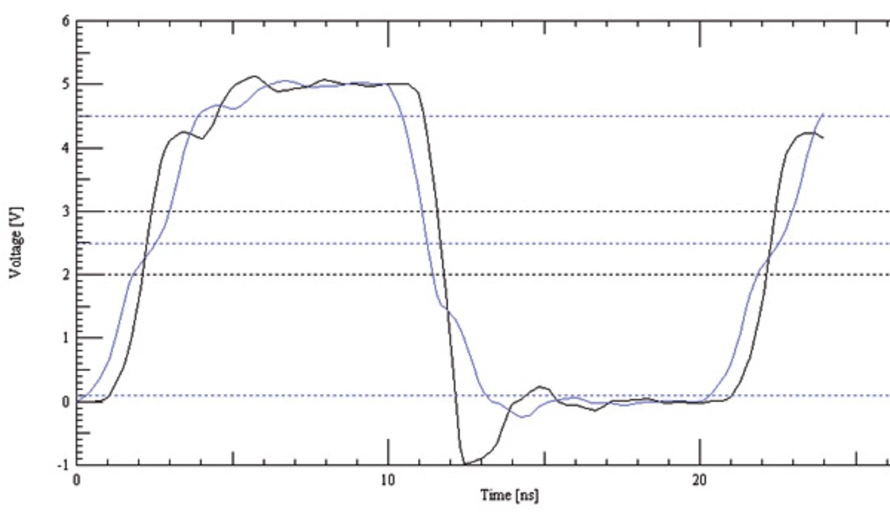 Unter Integrität der Versorgungsspannung versteht man die Qualität der Stromversorgung. Die Stromversorgung sollte so ausgelegt sein, dass immer genügend Energie zur Verfügung steht, um die Versorgungsspannungen stabil zu halten. Wenn ein großer Verbraucher sehr schnell schaltet, wird viel Ladung benötigt. Das kann dazu führen, dass die Versorgungsspannung lokal zusammenbricht und die Funktion anderer Bausteine beeinflusst.