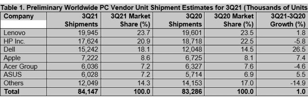 Die weltweiten PC-Auslieferungen beliefen sich im dritten Quartal 2021 auf insgesamt 84,1 Millionen Einheiten, was einem Anstieg von einem Prozent im Vergleich zum Vorjahr entspricht. In EMEA stiegen die PC-Auslieferungen in Q3 2021 sogar um 11,8 Prozent. Das besagen die vorläufigen Ergebnisse des Research- und Beratungsunternehmens Gartner.