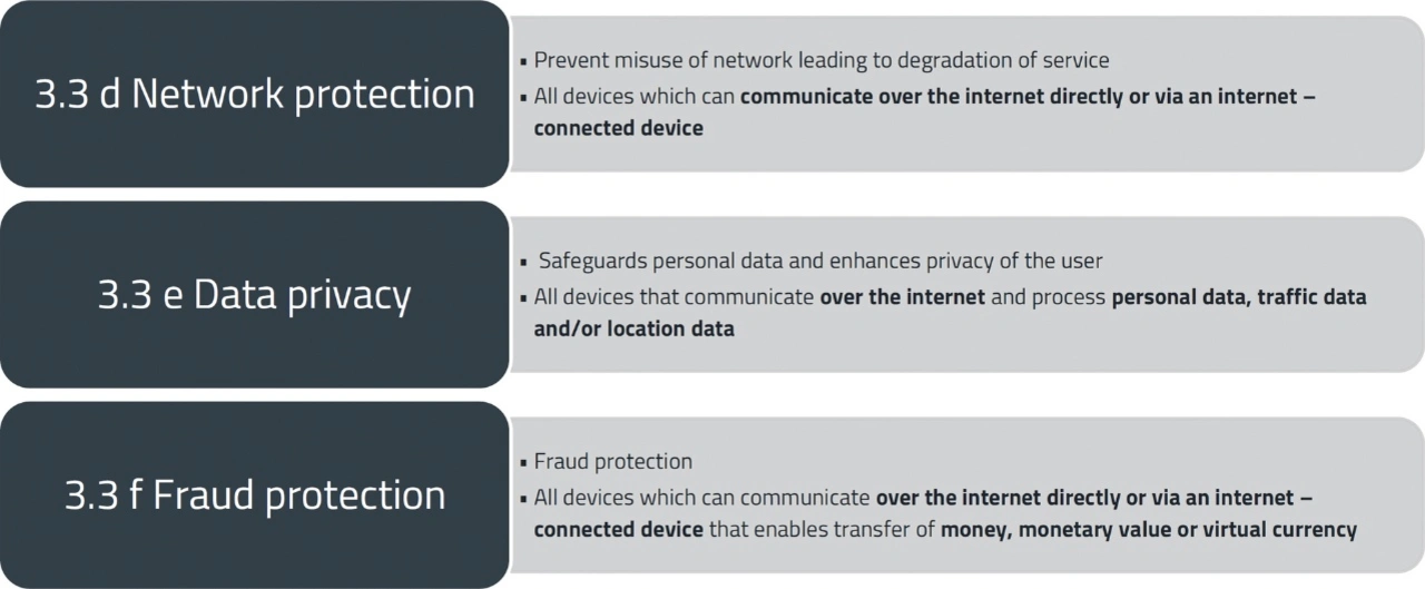 In Artikel 3 Absatz 3 der RED sind nun die neuen Anforderungen an die Cybersecurity von Funkgeräten definiert. Dabei geht es um die folgenden drei Punkte des zweiten Unterabsatzes von Artikel 3 Absatz 3 (Bild 3):