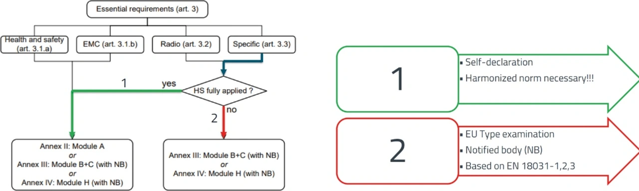 Gemäß der RED ist Cybersicherheit für funkende Geräte wie ein Funkmodul nach Artikel 3 Absatz 3 zu gewährleisten. Für das Funkmodul Cordelia-I spielt nur 3(3)(d) – Schutz des Netzes – eine Rolle, weil weder persönliche Daten nach 3(3)(e) oder Finanzdaten nach 3(3)(f) verarbeitet werden. Daraus folgt, dass Cordelia-I nach EN 18031-1:2024 geprüft werden muss.