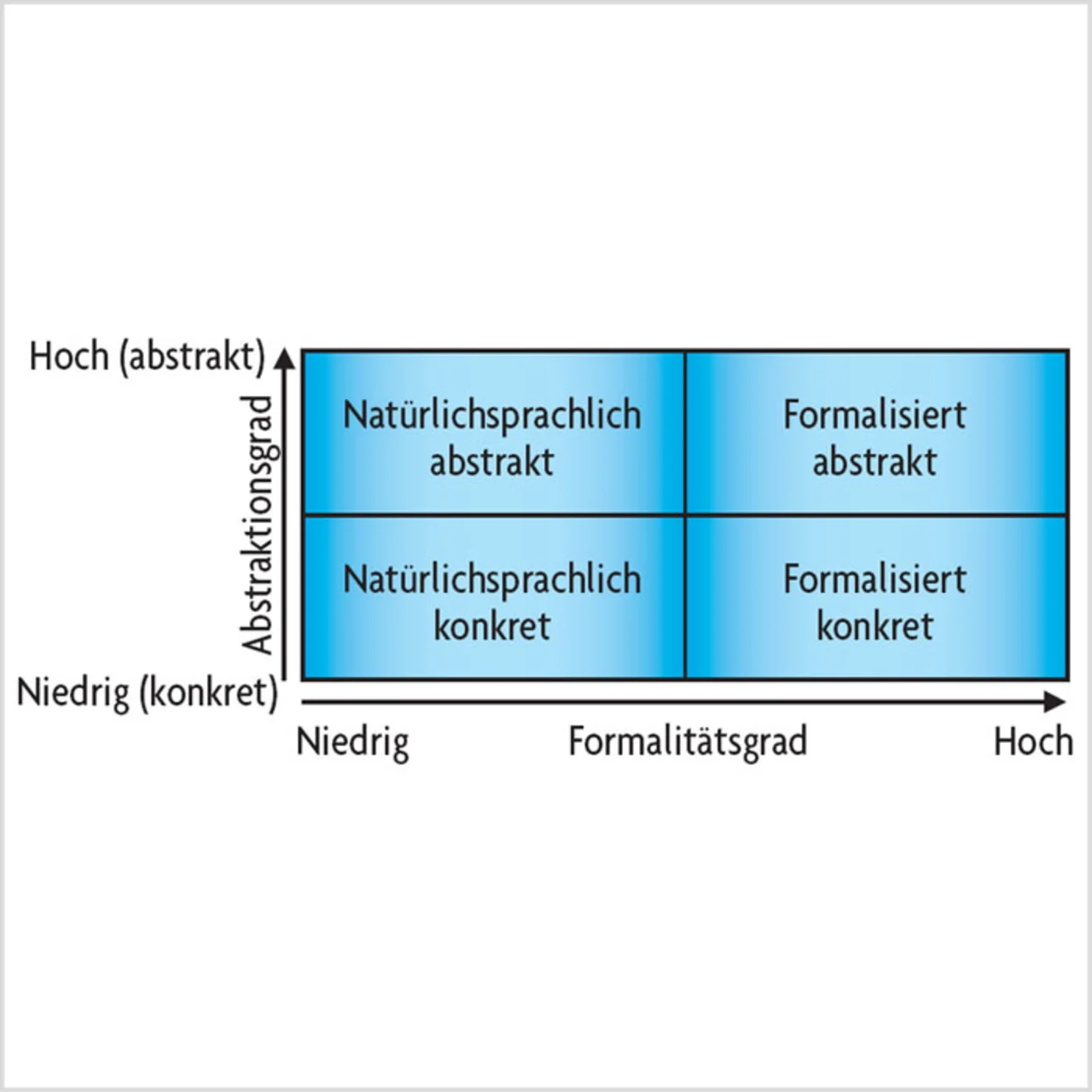 Es existieren mehrere Möglichkeiten, Testfälle zu klassifizieren. Eine typische ist die Unterscheidung nach der Art ihrer Darstellung – natürlichsprachlich oder formalisiert – und ihrem Abstraktionsgrad – inklusive Testdaten für die Prüfung oder abstrakt ohne konkrete Werte. Auf Basis dieser Klassifikation ergeben sich vier unterschiedliche Arten der Testfalldokumentation, die in Bild 2 dargestellt sind.