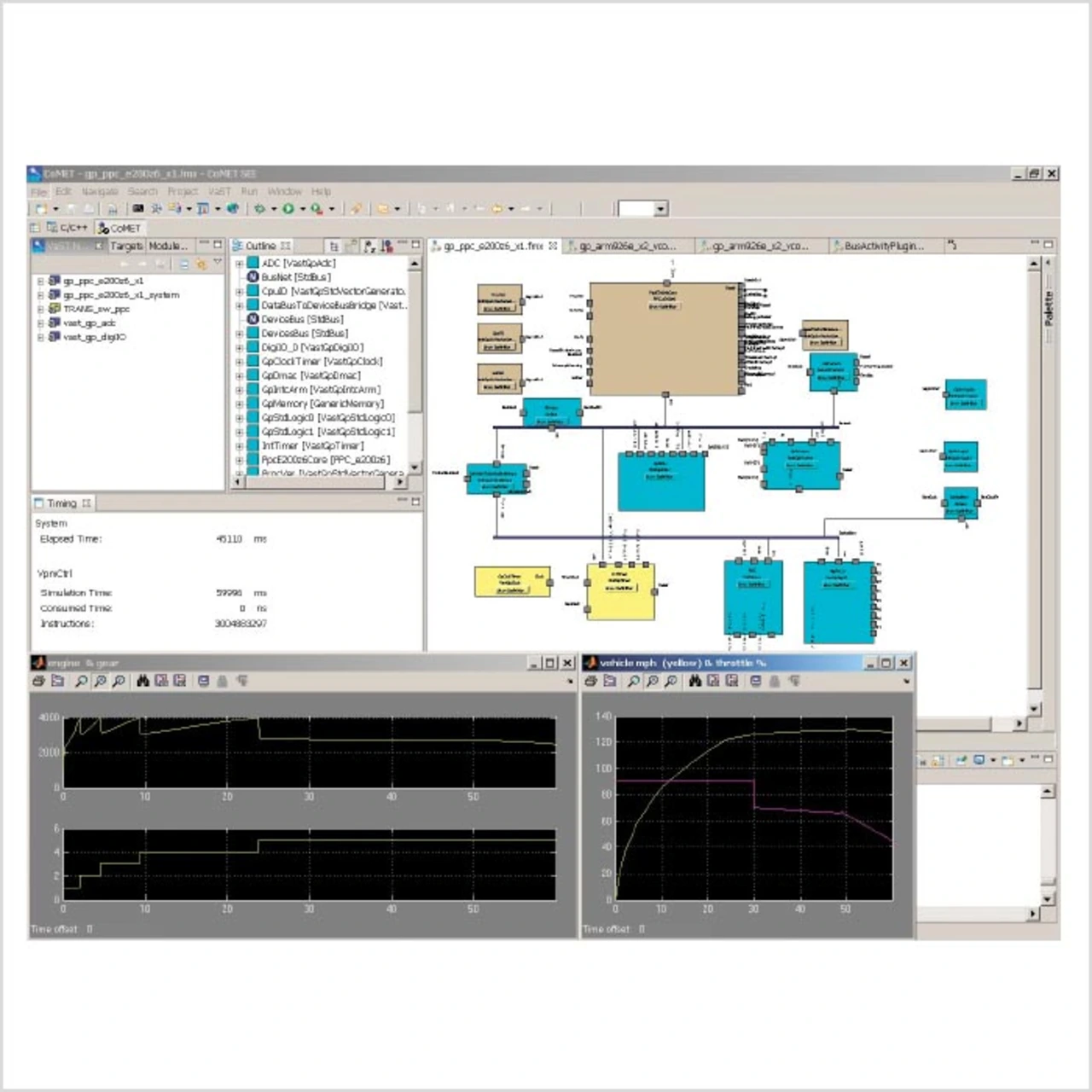Mit den genannten Halbleiter-Partnern (Freescale, Renesas, Infineon, NEC) hat VaST Systems vier der fünf wichtigsten Automotive-Chipzulieferer an der Angel. Lediglich ST fehlt noch. Mit NEC V850 und Freescale MPC 5554 wurden jüngst zwei Automotive-Controller der Liste verfügbarer virtueller Prototypen hinzugefügt. Auch durch die Zusammenarbeit mit The Mathworks dokumentiert VaST die automobile Zielrichtung seines Werkzeugs: Die virtuellen Prototypen lassen sich nahtlos in Matlab/Simulink integrieren und verhalten sich dann wie ein Hardware-Prototyp, auf den übrigens auch die gleichen Debugger angesetzt werden können wie auf das Zielsystem – der Entwickler bleibt also bei seiner gewohnten Arbeitsumgebung.