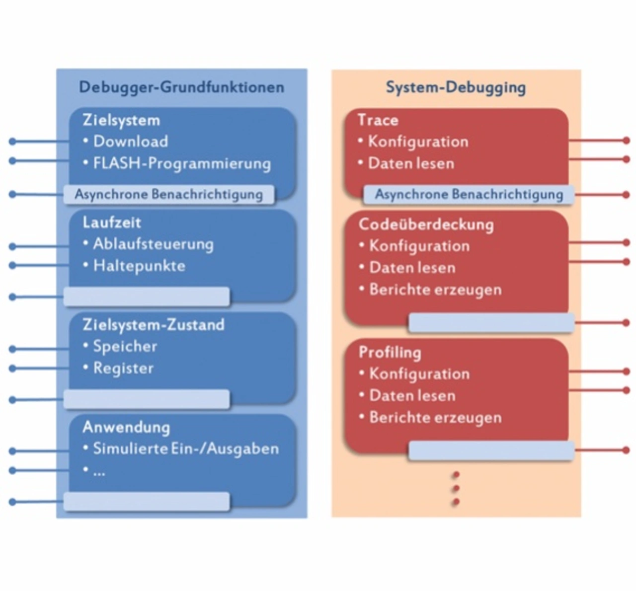 Für Tests auf realer Hardware von essentieller Bedeutung ist die enge Kopplung zwischen dem Debugger, der ja den eigentlichen Zugang zum Zielsystem ermöglicht, und dem Testwerkzeug, welches die Verwaltung von Testfällen und die Testdokumentation übernimmt. In den seltensten Fällen bieten Debugger nämlich auch eine komplette Projektverwaltung für den Test an. Testtools wiederum fehlt es oft an geeigneten Möglichkeiten, direkt mit dem Zielsystem über die Debug-Schnittstelle zu kommunizieren. Moderne High-End-Debugger wie die UDE stellen deshalb für die Tool-Kopplung eine Automatisierungsschnittstelle bereit, über die sich die Testwerkzeuge die Debugger-Funktionen zum Steuern des Zielsystems und zum Manipulieren sowie Auslesen der Target-Zustände zu Nutze machen können.