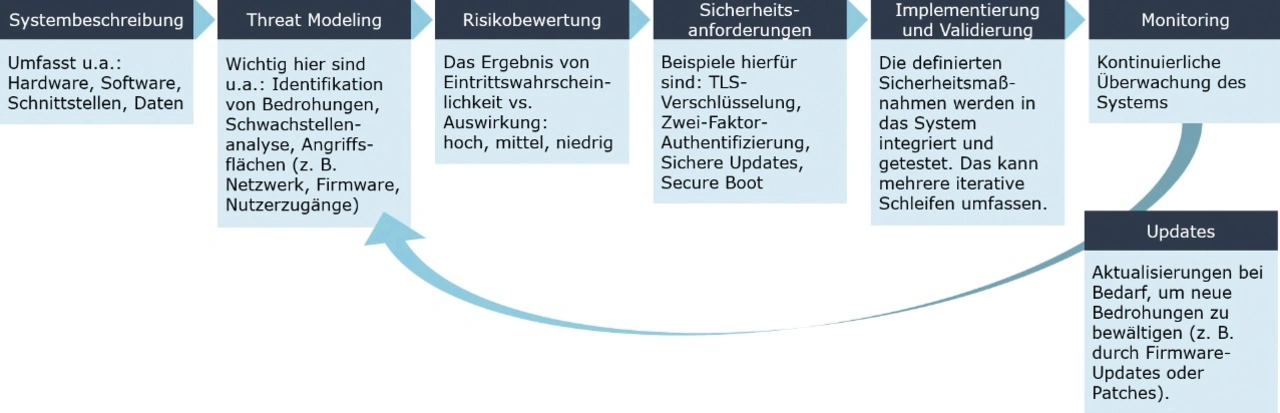 Der Ansatz »Secure-by-Design« bedeutet, dass Sicherheit von Anfang an ein zentraler Bestandteil der Produktentwicklung ist. Dies umfasst: