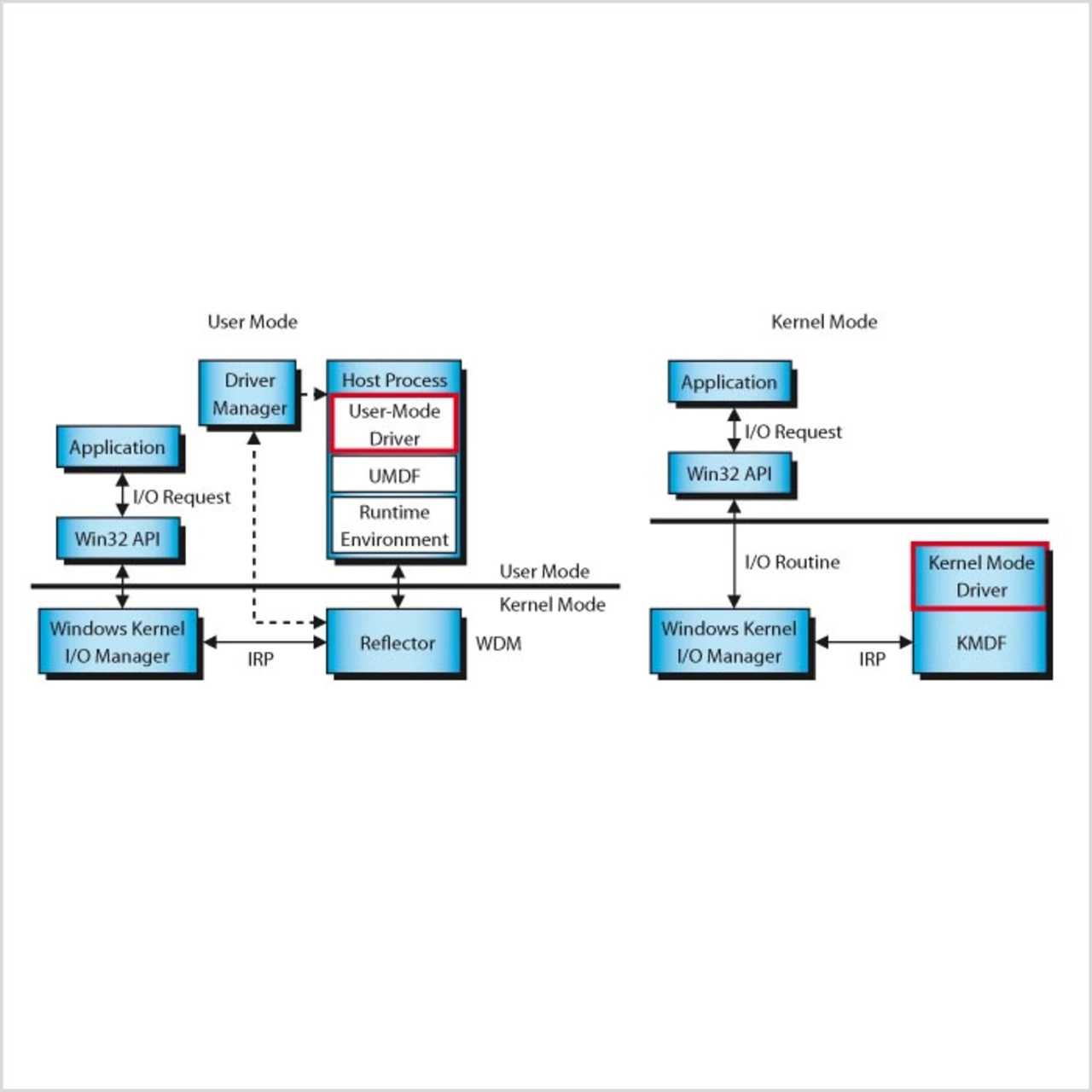 Während WDM-Treiber, die für den Kernel vorgesehen sind, per Definition eine standardisierte Struktur aufweisen, gibt es immer noch eine Vielzahl von unterschiedlichen Treibertypen für den User Mode, und im Grunde genommen können dafür laufend neue erfunden werden, was mit WDF erstmalig vereinheitlicht werden soll. Die WDF-User-Mode-Treiber basieren auf dem bekannten COM-Komponenten-Modell mit den entsprechenden Interfaces. Auch wenn die neuen Treiber dem gleichen Prinzip gehorchen, werden sie in den Treibermodellen (UMDF, KDMF, siehe Bild 1) unterschiedlich implementiert und im gemeinsam verwendeten WDF-Rahmen eingebettet.