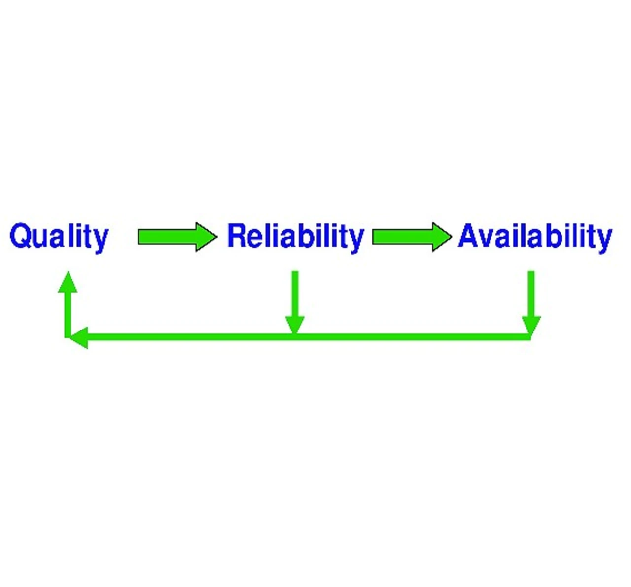 Bild 1 veranschaulicht, dass sich Qualität, Zuverlässigkeit und Verfügbarkeit eines Systems direkt aufeinander auswirken. Qualität ist ein subjektiver Begriff, der beschreibt, ob ein Produkt oder Service die Erwartungen aus Benutzersicht erfüllt.