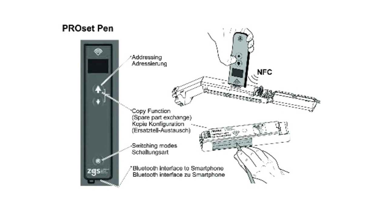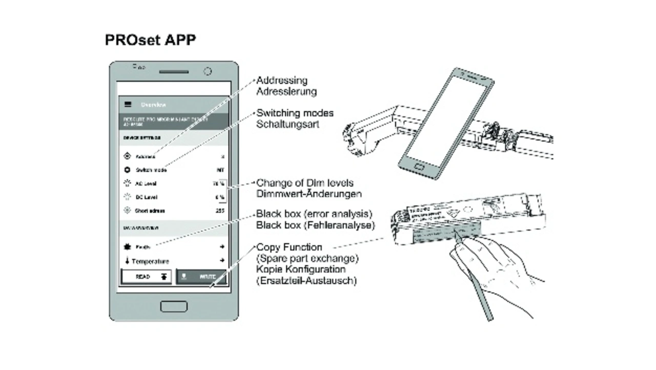 Zu entwickeln war ein universelles NFC-basierendes Programmiergerät für eine neue Generation von industriellen Deckenleuchten. Anforderungen waren: Kompakte Maße, gut ablesbare, grafische Benutzerschnittstelle (HMI), stromsparender Batteriebetrieb mit umfangreichem Power- und Lademanagement, drahtlose Kommunikation mit Zentrale und Zielgeräten via Bluetooth-Low-Energy (BLE) und Near-Field-Communication (NFC) sowie ein robustes, sturzfestes Gehäuse. Auf den ersten Blick ein relativ simples Gerät, welches aber im Detail betrachtet eine Ansammlung von doch sehr speziellen Herausforderungen enthielt (siehe Bilder).