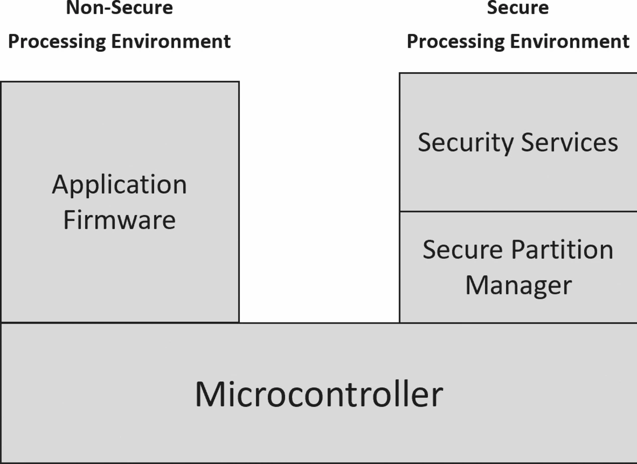 Isolierung mit TrustZone-Technologie: TF-M verwendet Arm TrustZone, um verschiedene sichere und nicht sichere Domänen innerhalb des Prozessors zu schaffen, sodass sensible Daten wie kryptografische Schlüssel und sicherheitskritische Operationen in der sicheren Domäne verarbeitet werden können. Die durch die Hardware erzwungene Isolation reduziert die Angriffsfläche und mindert potenzielle Bedrohungen.