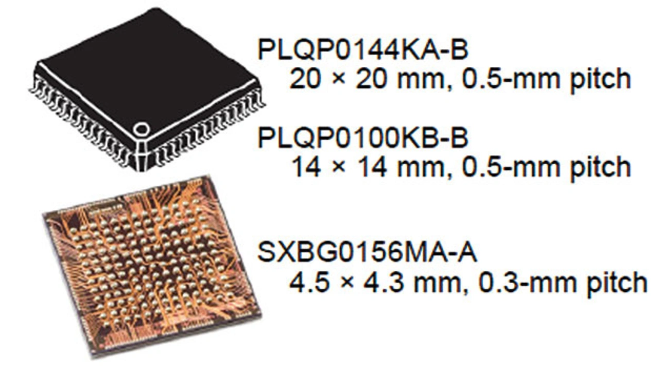 Der auf dem Modul eingesetzte Renesas-Mikrocontroller ist von der Bauform her mit 20 × 20 mm2 (PLQPO144KA-B) relativ groß, was bei der Vielzahl der Interfaces und den hierfür notwendigen Anschlüssen nicht verwundert. Es gibt den Mikrocontroller jedoch auch in kleineren Bauformen wie dem Chipscale Package (CSP) (Bild 1).