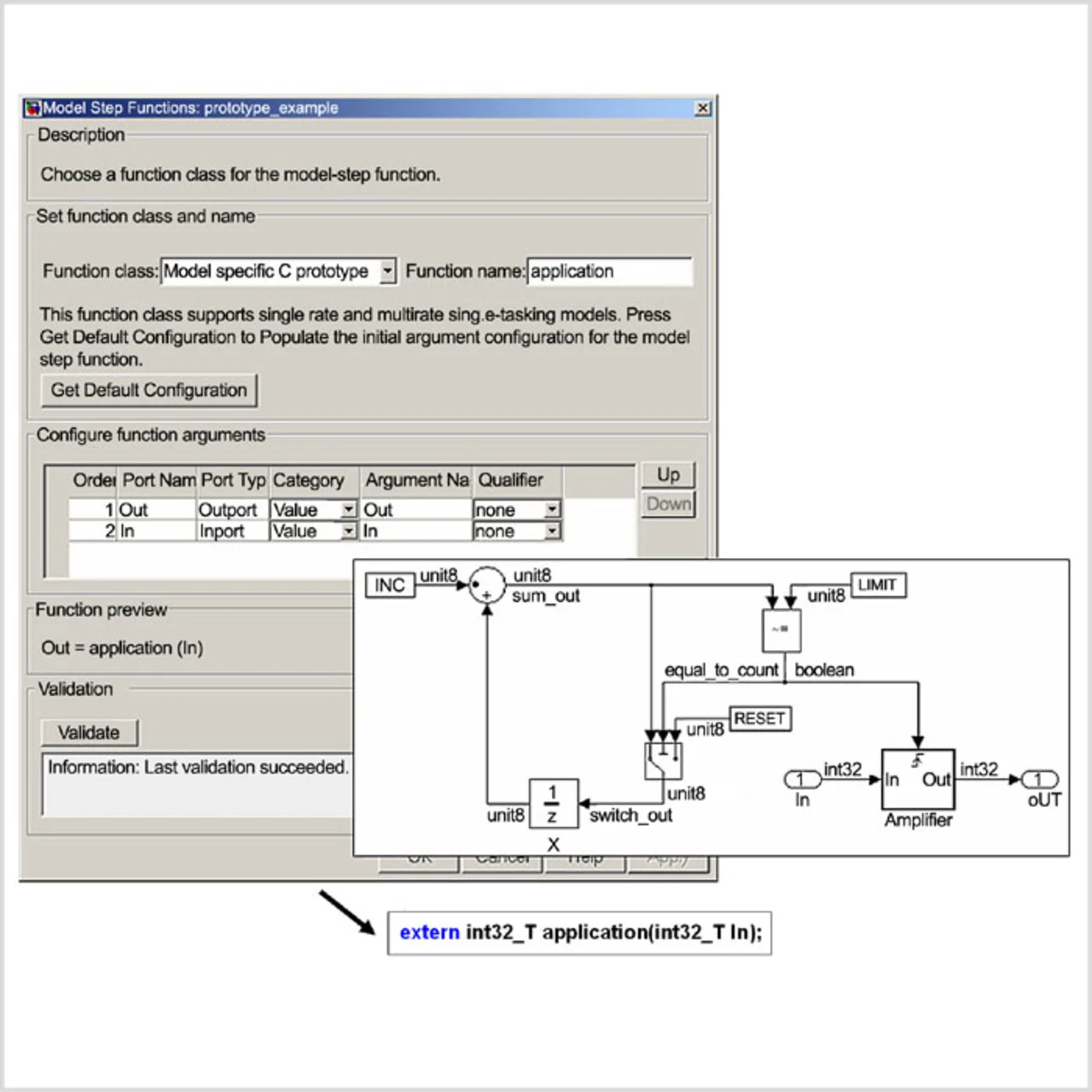 Zur Erleichterung der Integration wurde der Real-Time-Workshop Embedded-Coder um die Möglichkeit zur Definition eines Funktionsprototypen erweitert. Modellentwickler können damit einen Code erzeugen, der eindeutig definierte Schnittstellen für die Model-Step-Funktion und die Modell-Referenz-Funktionen enthält. Ein externer Scheduler kann den für diese Funktionen generierten Code auf einfache Weise aufrufen (Bild 3).