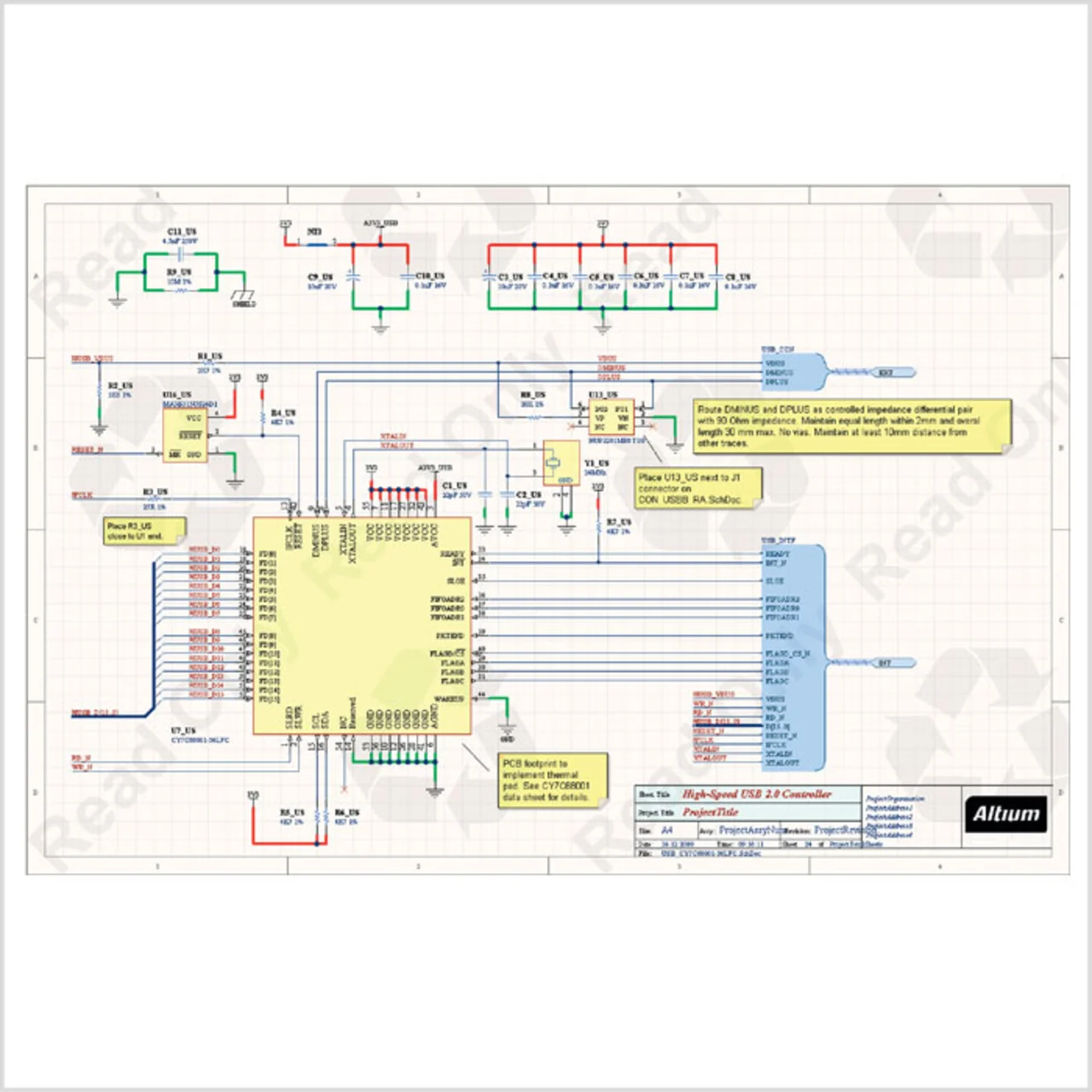 Existiert z.B. in einem Design ein USB-Port, der wiederverwendet werden kann, so wird der Schaltplan neben dem Recyclingsymbol mit einem „Wasserzeichen“ dargestellt, das ihn als „Read Only“ kennzeichnet (Bild 3). Diese Kennzeichnungen verschwinden im PDF oder im Ausdruck der Schaltplanseite. Device-Sheets lassen sich einfach aus „normalen“ Schaltplanseiten erzeugen. Dabei kann sogar eine Hierarchie nachgebildet werden, d.h., ein Device Sheet kann über mehrere Ebenen auch mehrere Schaltplanseiten enthalten. Die Device Sheets werden in einem eigenen Verzeichnis abgelegt und bilden so eine eigene Bibliothek.