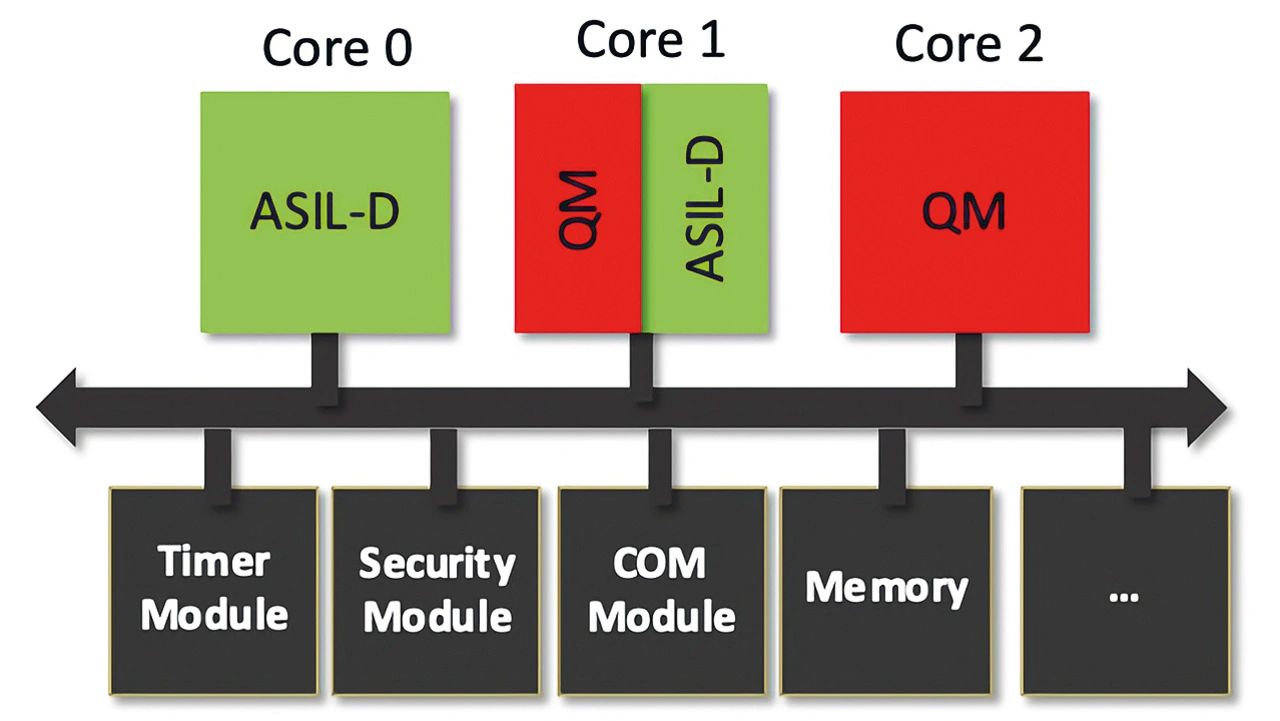Heutige Hochleistungs-ECUs implementieren in der Regel nicht nur eine Art von Anwendung, sondern mehrere. Diese können unterschiedliche Stufen der funktionalen Sicherheit haben. Zum Beispiel kann eine ECU neben einer ASIL-D-Applikation ebenfalls eine Quality-Management(QM)-Level-Applikation implementieren. Quality-Management, also ohne besondere Anforderungen an die funktionale Sicherheit. Was bedeutet das für das Entwickeln der Software?