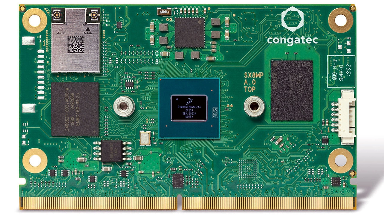 Der Halbleiterhersteller NXP hat seinen i.MX-8M-Plus-Prozessor mit einer solchen NPU ausgestattet, um ihn fit für das maschinelle Lernen zu machen. Kombiniert mit vier Arm-Cortex-A53-Kernen und einem Arm Cortex-M7-Controller erzielt die Einheit bis zu 2,3 TOPS. Zudem besitzt der i.MX 8M Plus einen Image-Signal-Prozessor (ISP) für das parallele Verarbeiten von hochaufgelösten Bildern und Videos in Echtzeit. Er erlaubt bereits beim Erfassen ein Vorverarbeiten der Bilder. So kann die NPU im Nachgang noch eindeutigere Ergebnisse liefern – das ist sowohl für das Verarbeiten von Bildern mit hoher Leistung in der Industrie interessant als auch überall dort, wo Entwickler mithilfe von Bildbearbeitungsalgorithmen bessere visuelle Ergebnisse erzeugen möchten. Um mehr und mehr Edge-Applikationen mit dem NXP-Prozessor auszustatten, hat Congatec ein Starterset konzipiert und auf den Markt gebracht (Bild 1).