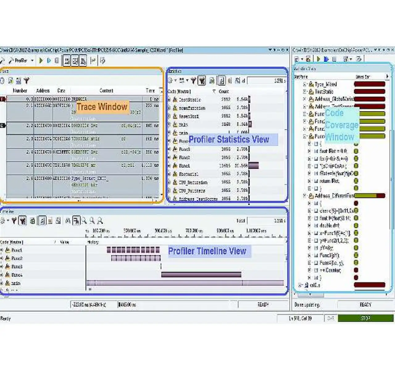 Die resultierende Trace-Datei erlaubt eine komplette Programm- und Datenanalyse einschließlich Profiling und Code-Coverage. Allerdings fehlen, wie bereits bemerkt, die Echtzeitaspekte in der Zeitmessung.
